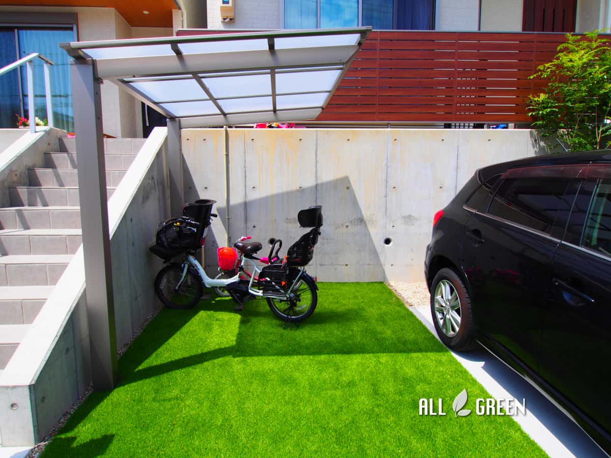木調の門塀と人工芝の緑が目を引く名古屋市瑞穂区の新築外構工事