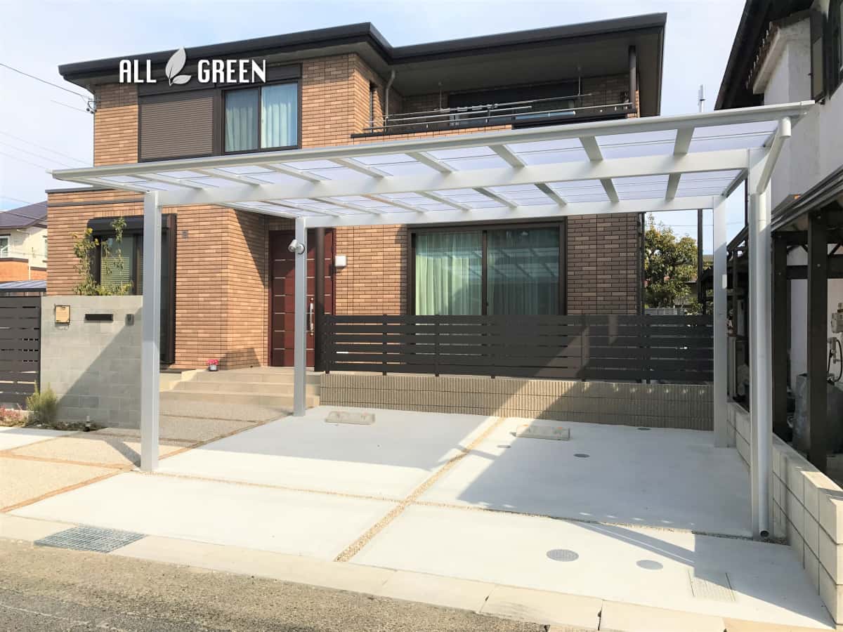 | 外構工事概要 | 天白区 K様邸 新築外構工事 門塀工事・土間コンクリート工事・アプローチ工事・カーポート工事・目隠しフェンス工事・タイルテラス工事・植栽工事・照明工事 |