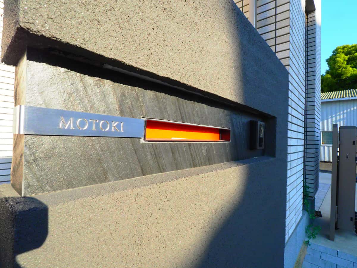 表札・ポスト上部には照明が仕込まれているので夜はぼんやりとライトアップ。日中とは違った顔をみせてくれる門周りを演出することができました。