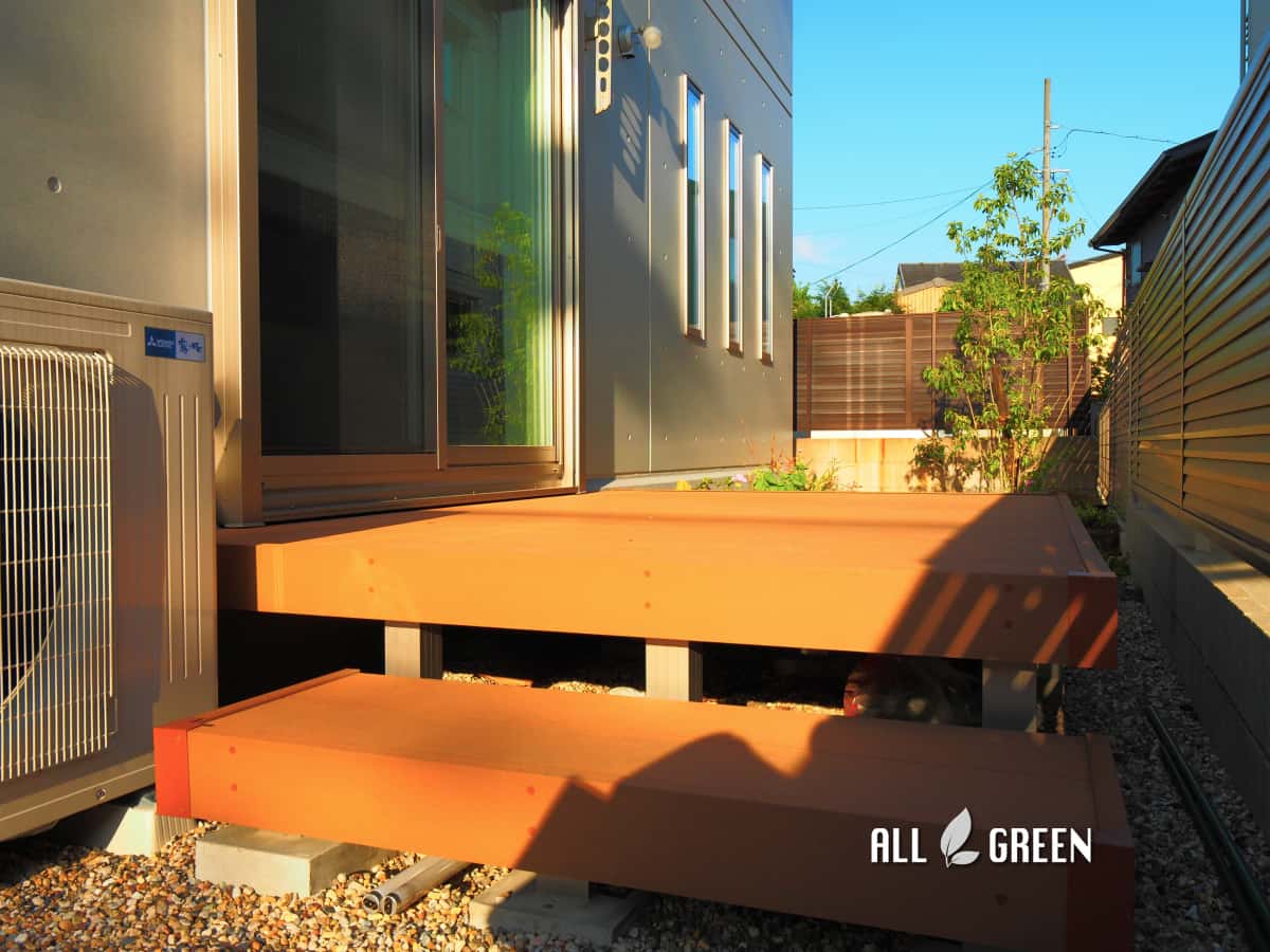 そして、お施主様のもう一つのご要望であったウッドデッキはYKKAPのリウッドデッキを使用しております。「物干し竿はあるものの建物の壁についているせいで干しにくくて・・・」とお困りだったお施主様。