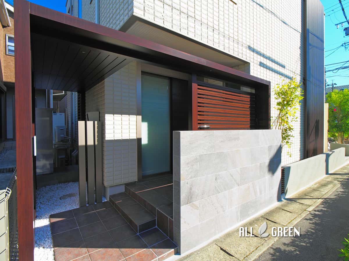 | 工事内容 | 解体工事、300×600タイル貼り門塀工事、目隠しゲート門構え、植栽、インターホン、ポスト、表札、ポーチタイル復旧、白玉砂利敷き均し、塗り壁再塗装 |