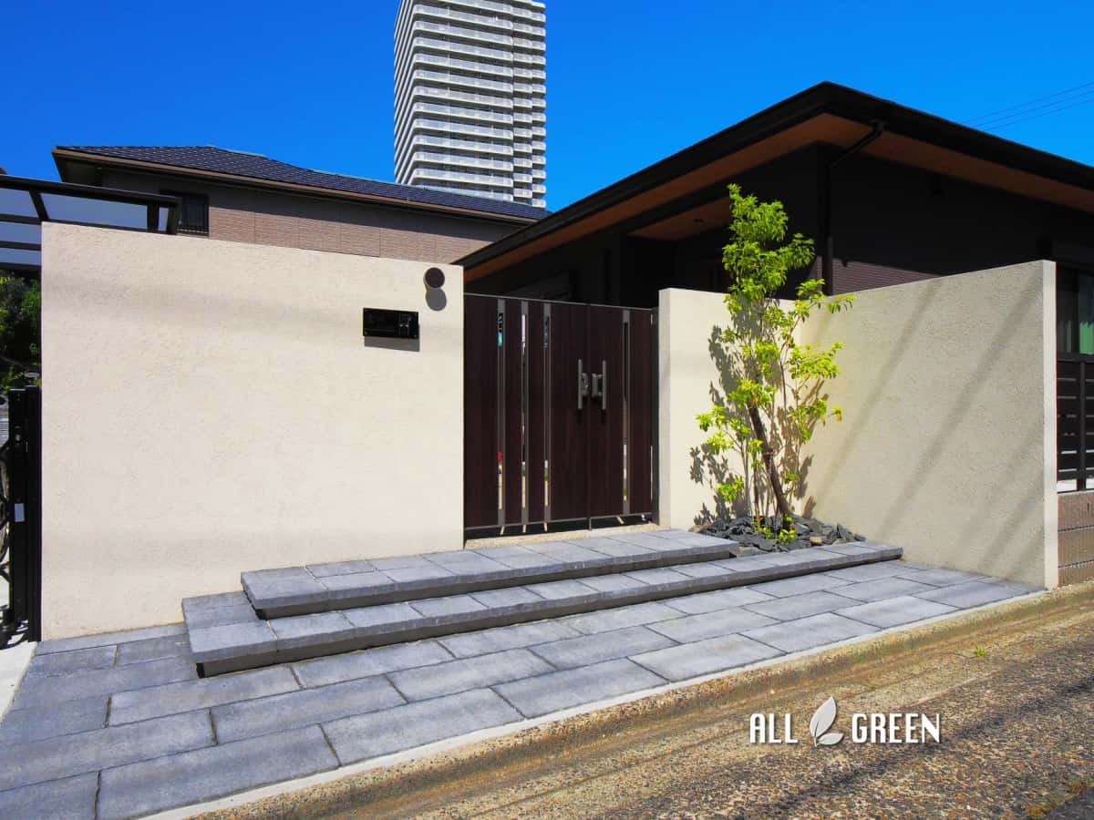 植栽は門塀前に門塀より少し高めのものを植樹。
