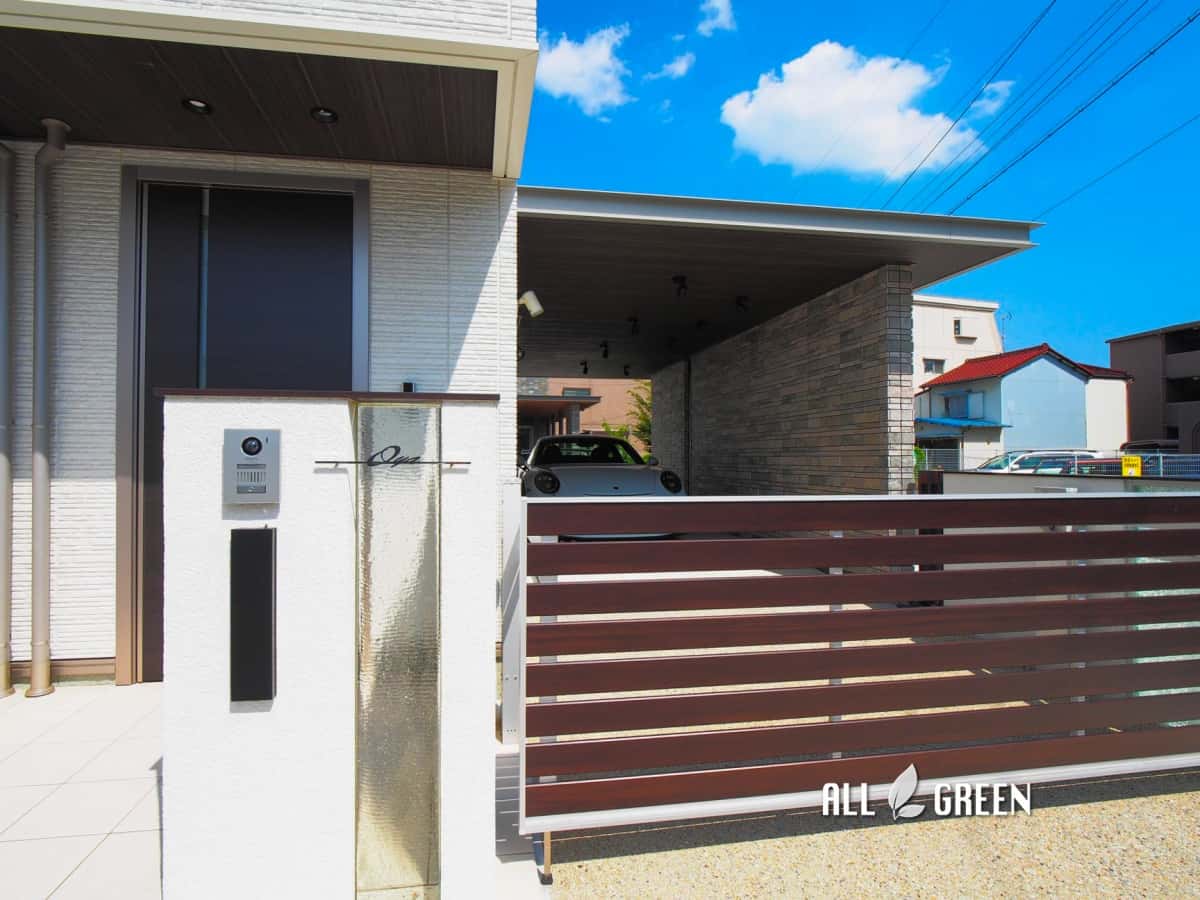 来客の目を引く名古屋市中川区のガラスで魅せるシンプルモダンな外構