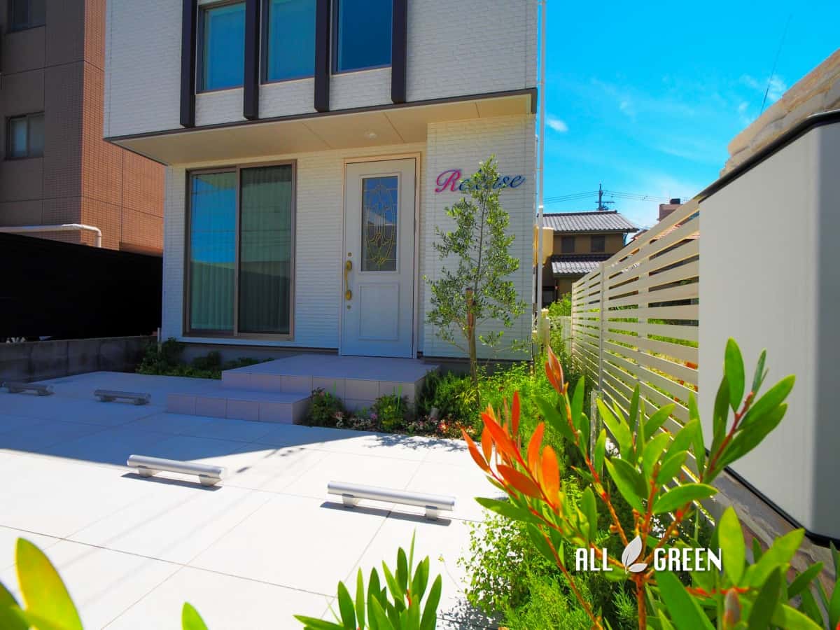 | 外構工事概要 | 名古屋市東区S様邸エステサロン外観工事 駐車場、フェンス、看板、ポスト、植栽 |