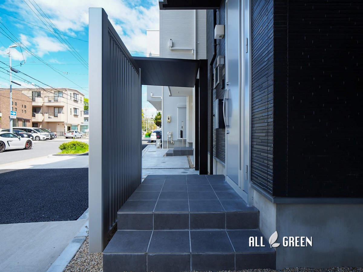 玄関扉を開けるとすぐ歩道なのでアイストップしたいと目隠しフェンスをご希望されたお施主様。