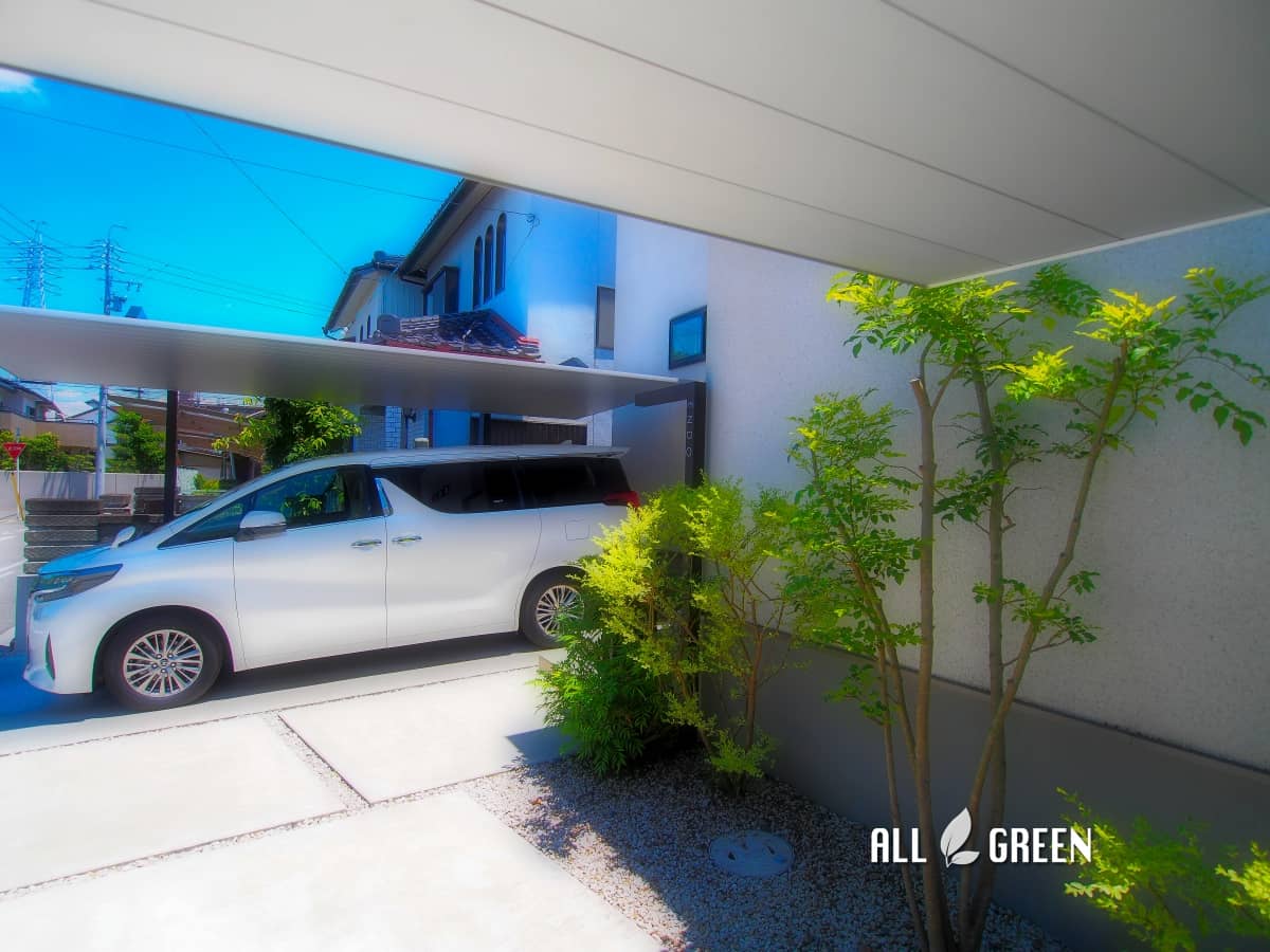 カーポートを設置したお写真左側には当初植栽が植えられておりましたが、カーポートを設置するにあたってサイクルポート奥に移植。