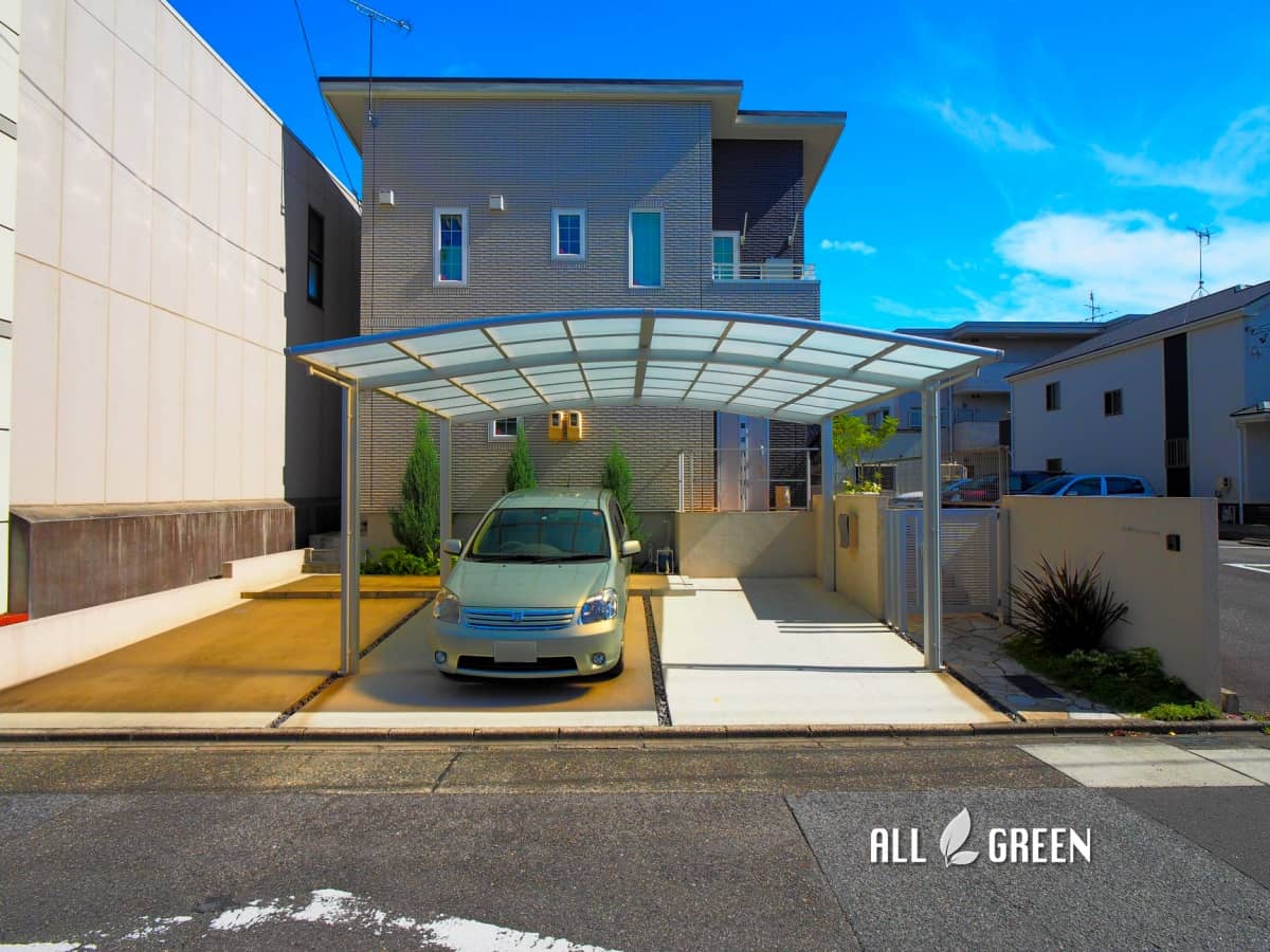 色の感触を掴まれやすい駐車場スペースと門塀は白色を使用。