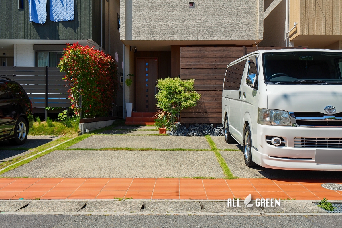 駐車スペースの真後ろ、一階の掃き出し窓前のスペースにウッドデッキを設置したいとのことでしたので、LIXILの樹ら楽ステージという商品を設置させていただきました。