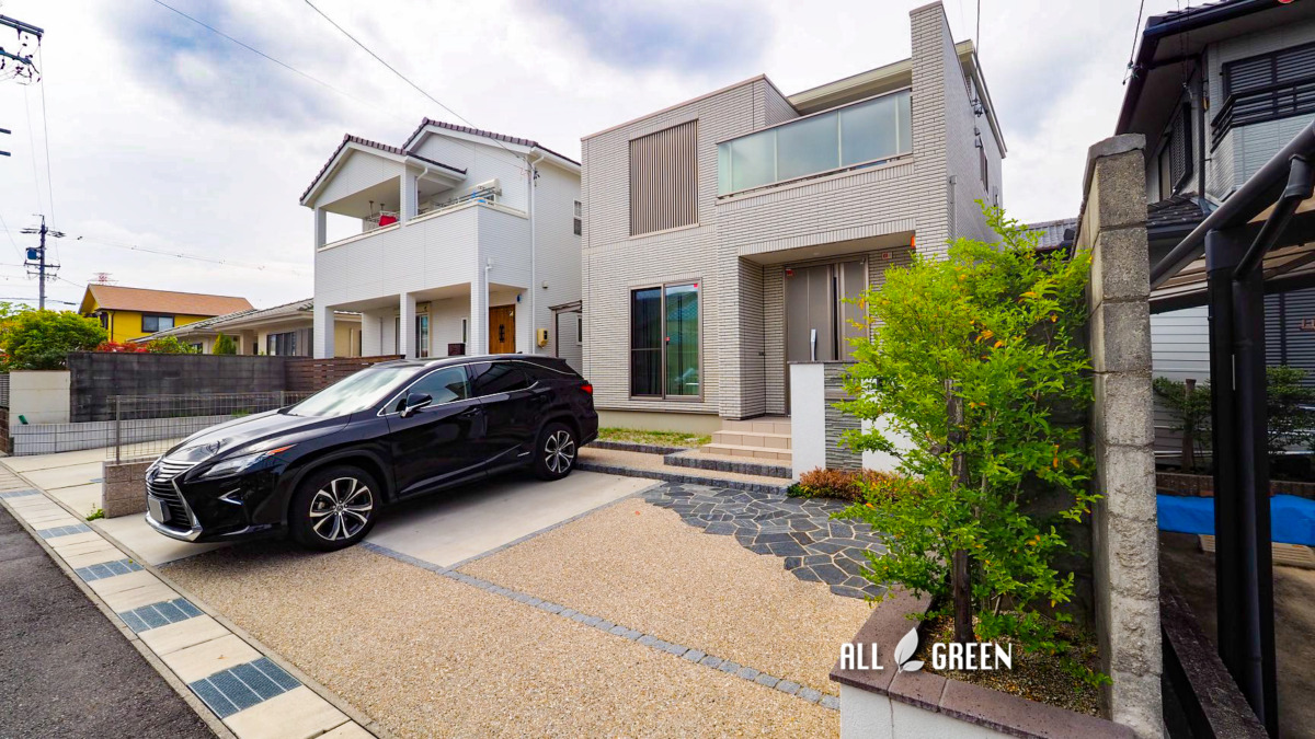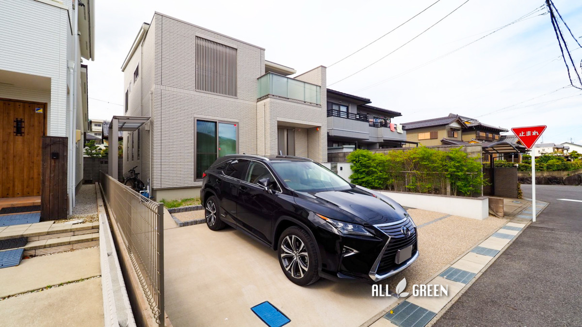 駐車スペース、門塀、フェンス、テラス屋根、植栽