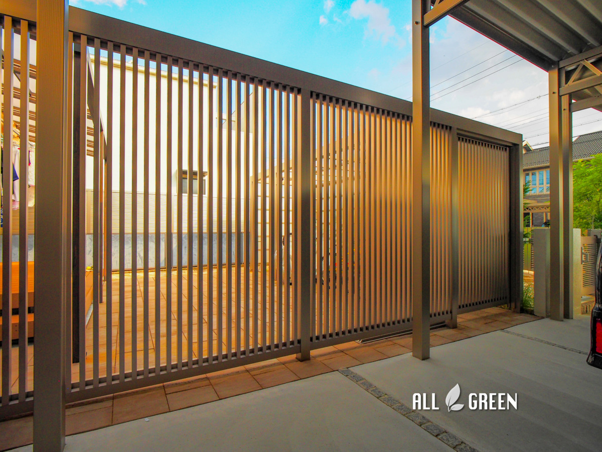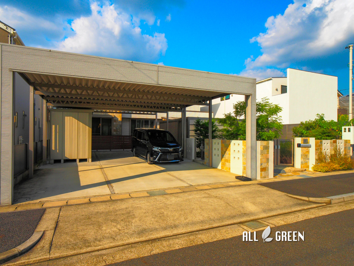 カーポートと邸宅の間には目隠しフェンスを設置しプライベートを保護。