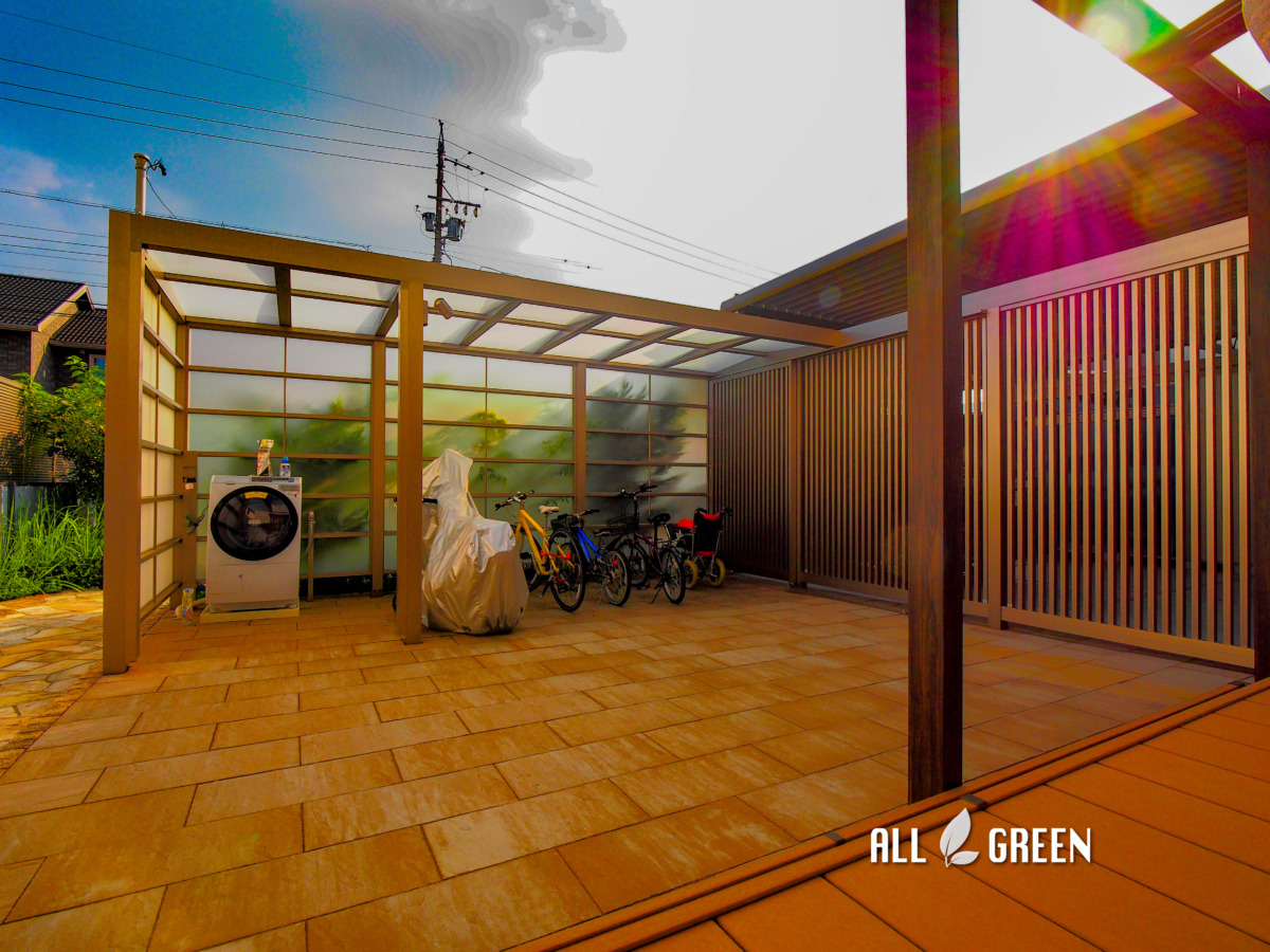 「既設のカーポートを広げたい」「自転車と洗濯機を置きたい」「ウッドデッキを付けたい」とのご要望でした。