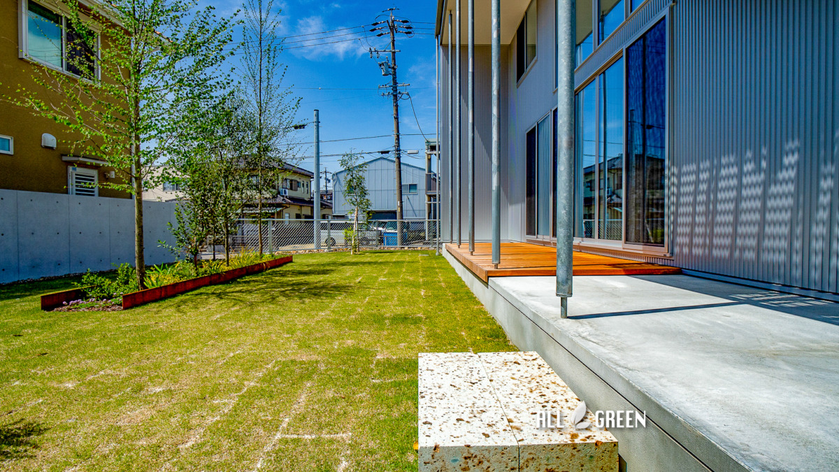 そのままでもカッコイイPCフェンスですが、芝や植栽との相性がとても良く合わせることでまた一味違った雰囲気が味わえます。