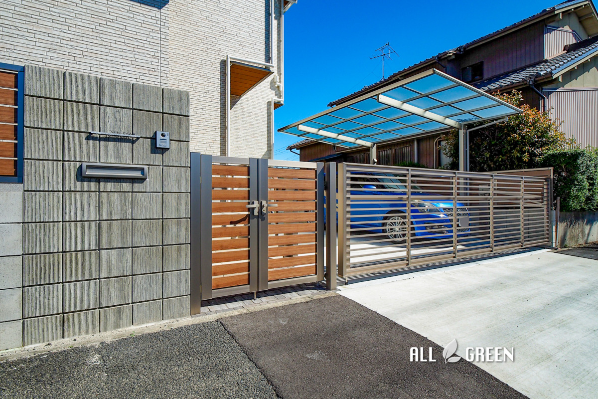 | 外構工事概要 | 名古屋市中川区T様邸 駐車スペース、カーポート、跳ね上げ門扉、門壁、門扉、フェンス |