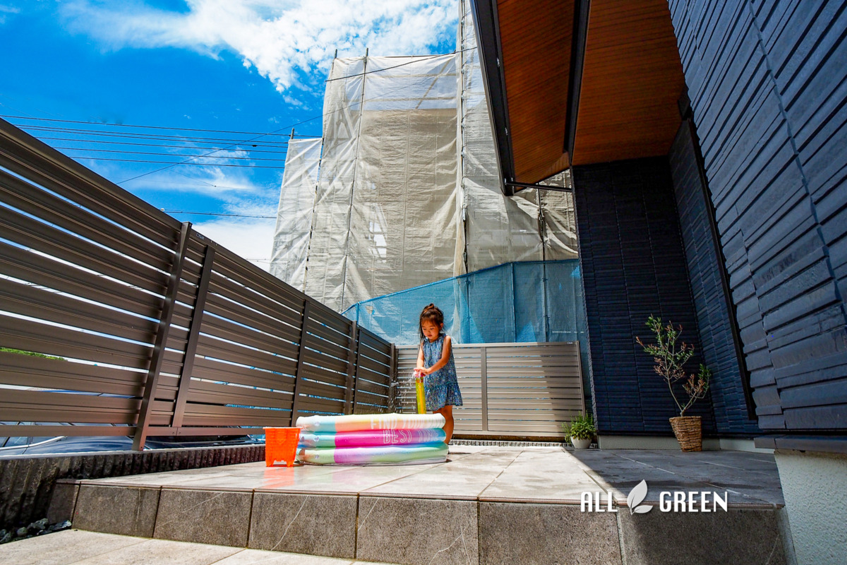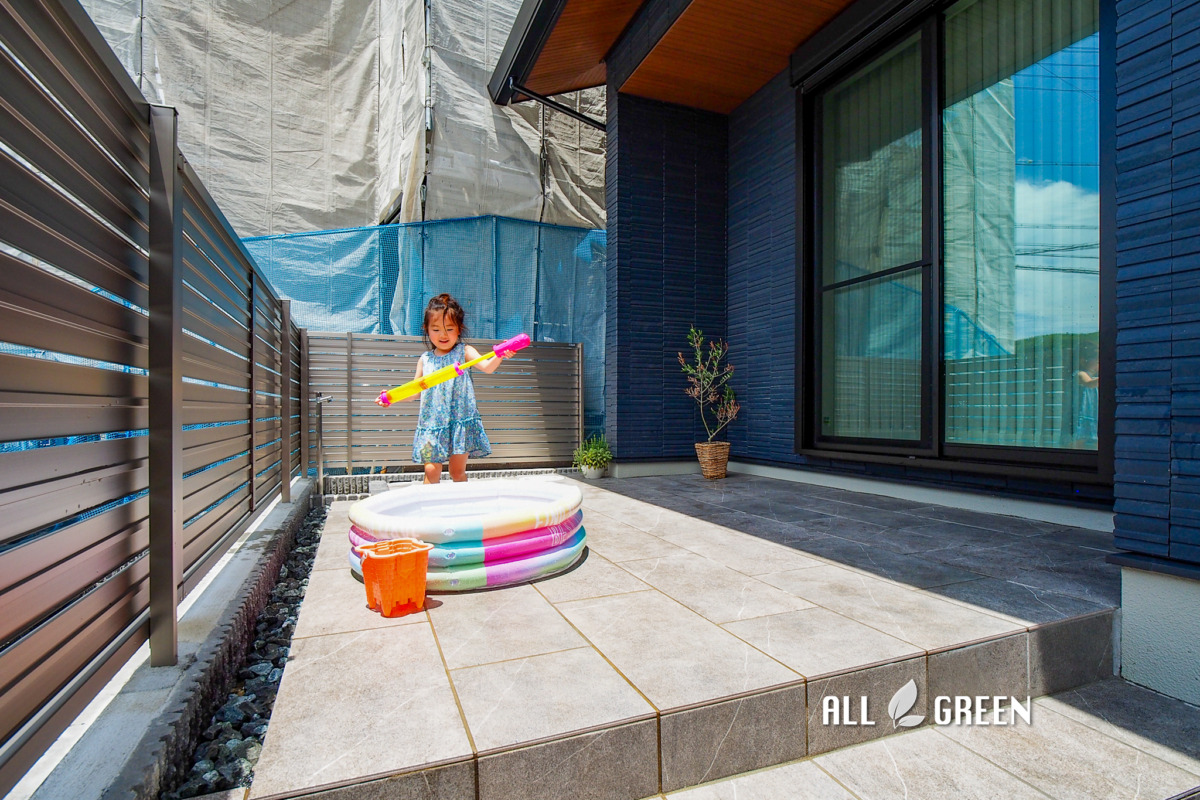 フェンスの内側は家族でゆったりとくつろげる広さを持たせたお庭空間となっています。