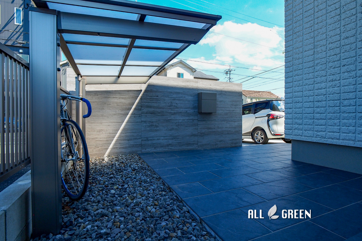 セラウォールの後ろにサイクルポートを設置したことで表からは見えず生活感を抑えています。
