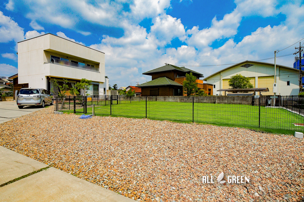 | 外構工事概要 | 清須市I様邸新築外構 フェンス、門扉、芝生、砕石敷 |