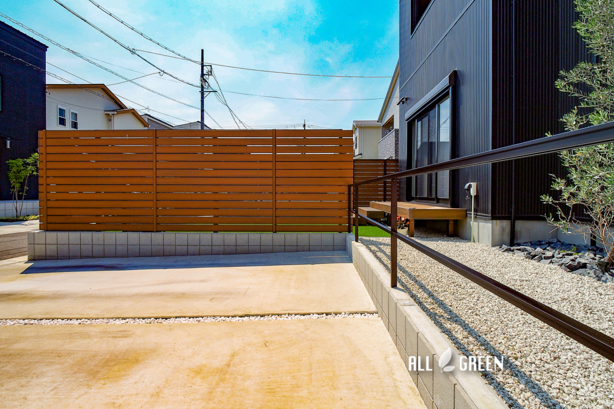 メッシュフェンスじゃ遮れなかった外部からの視線を木調のフェンスでガード!家族でまったり過ごすがテーマの清須市のリフォーム外構