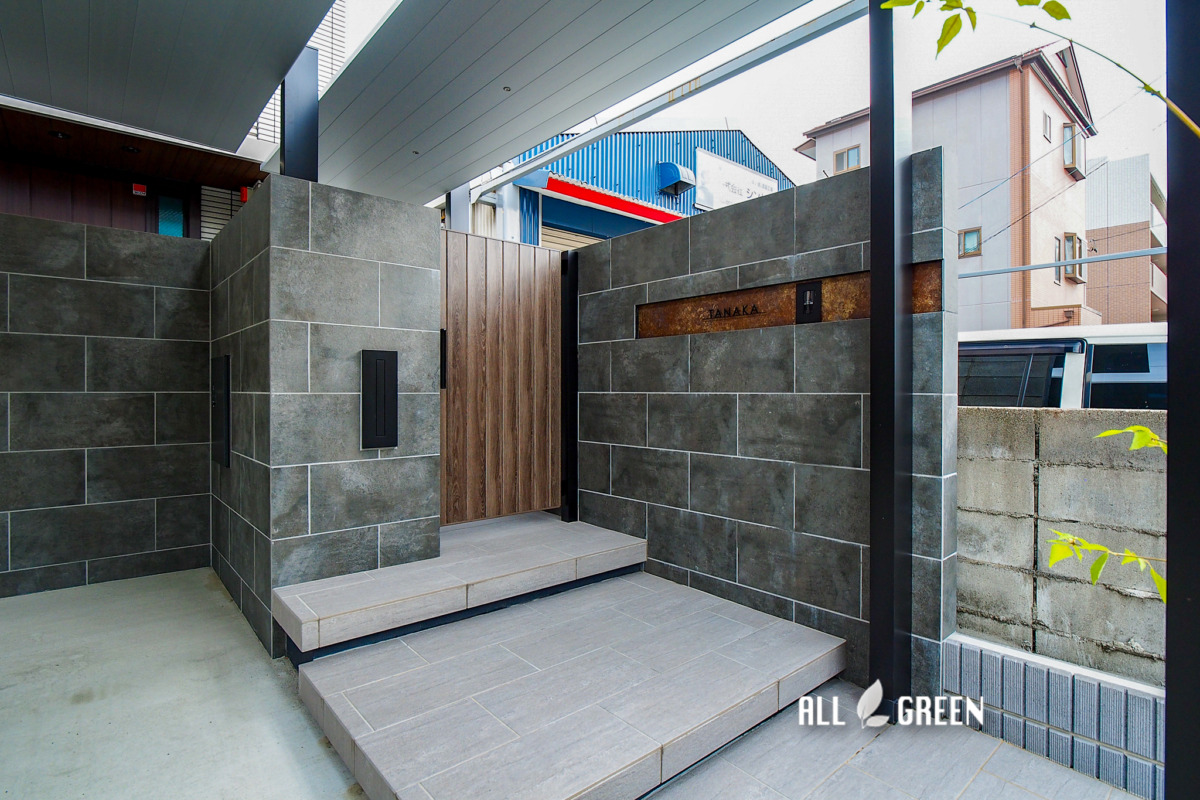 駐車・アプローチ空間と建物を壁で区切ってデザインした名古屋市瑞穂区のセミクローズ新築外構
