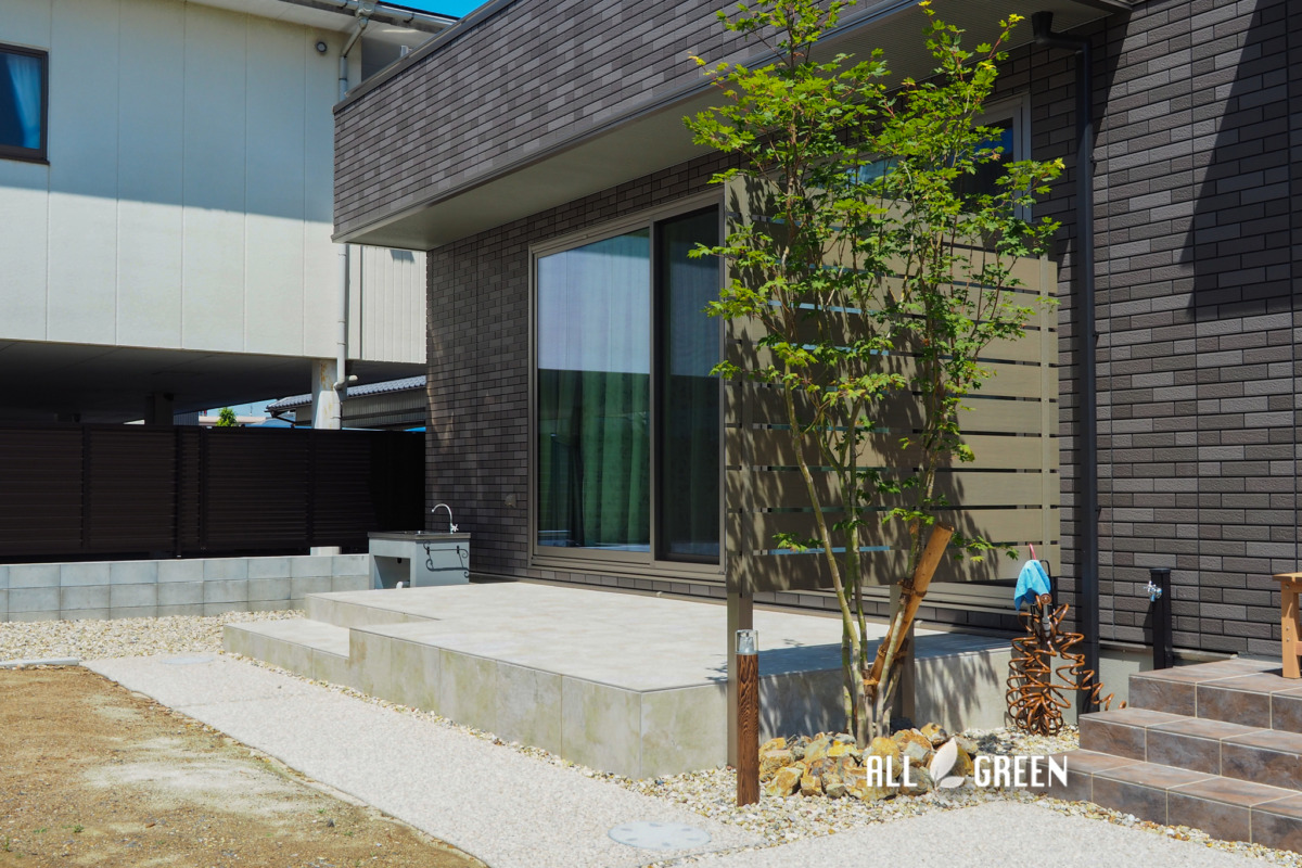 畑でとれた、とれたて野菜をバーベキューでおいしく食べる・・・素敵なお庭生活が目に浮かぶ外構デザインとなりました。