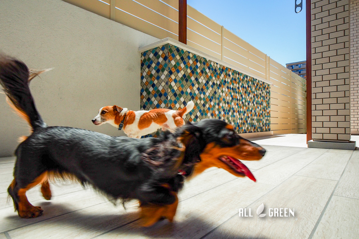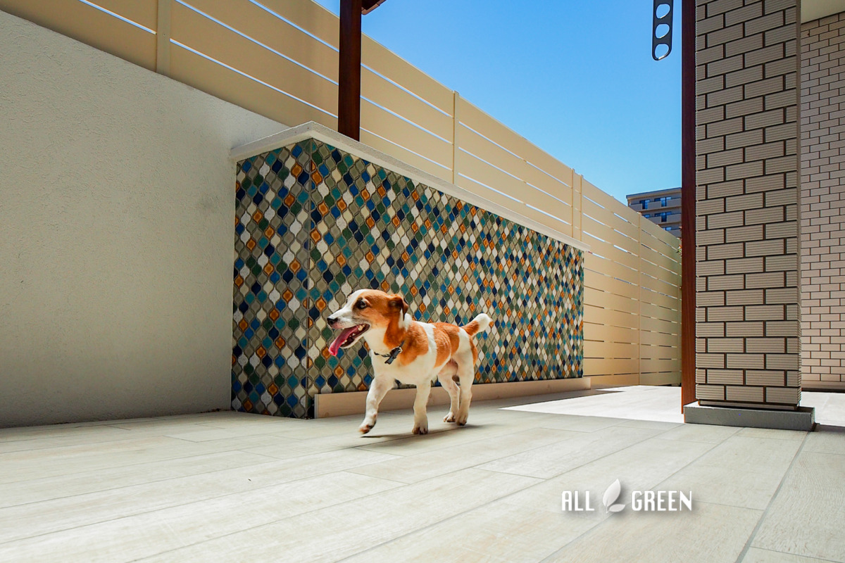 タイルデッキなのでウッドデッキのようにささくれも出ないため、お手入れ不要なのはもちろん、飼っている愛犬にとっても安心安全となっています。