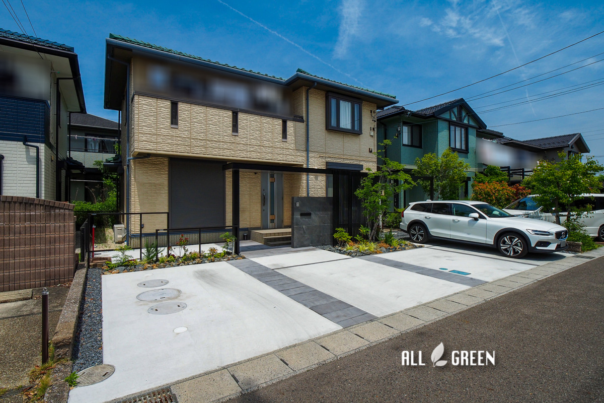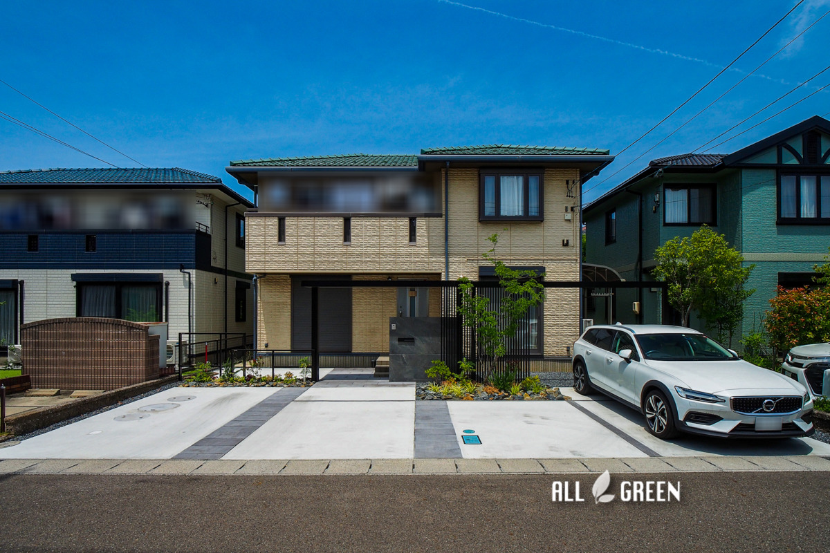 愛知県春日井市 リフォーム前より1台多く駐車できるようになった駐車場をもつシンプルですっきりとしたモダンなオープン外構