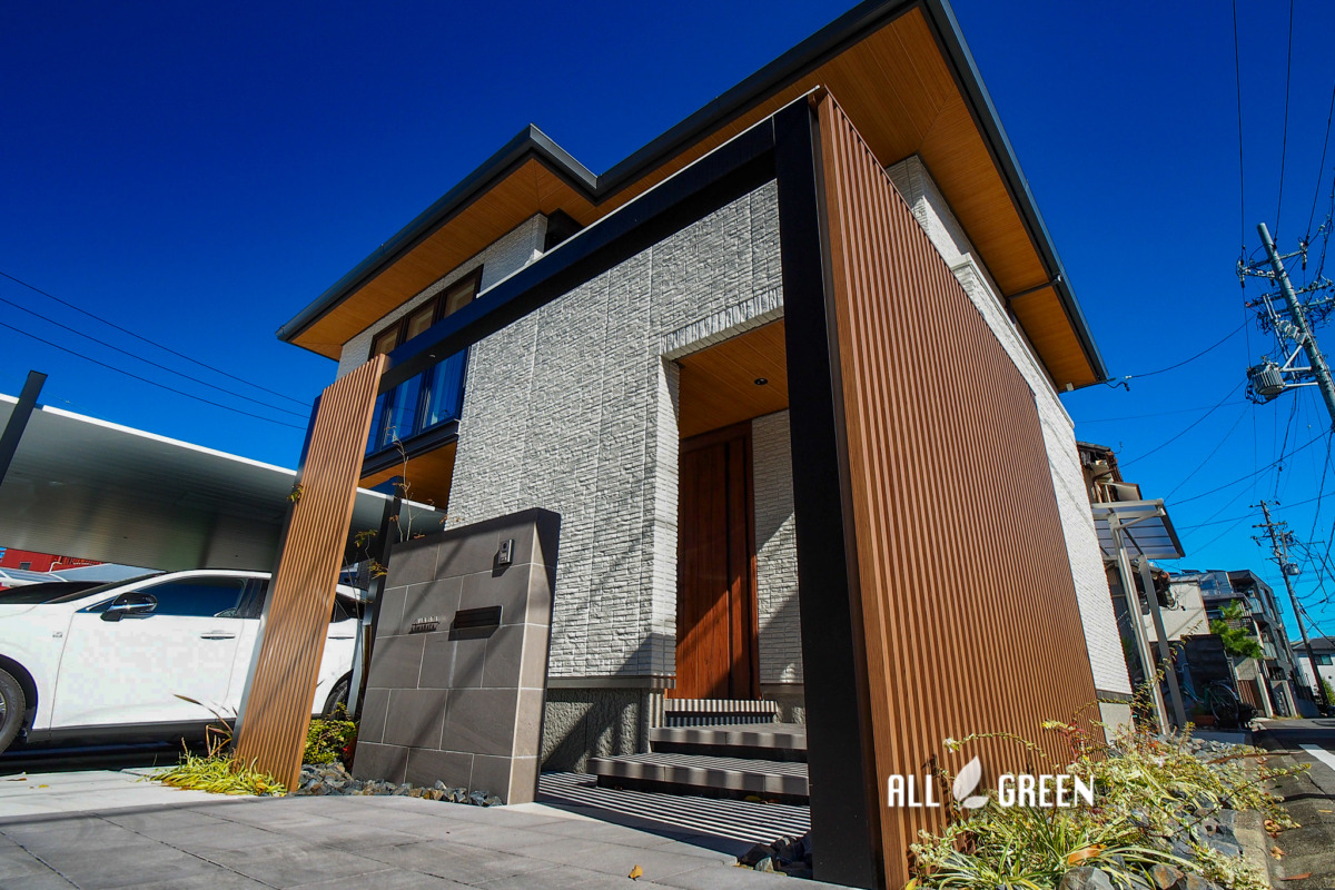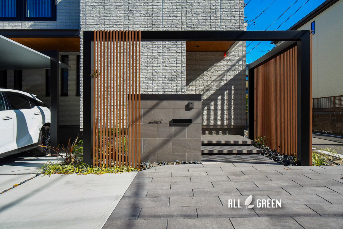名古屋市北区 黒×木目調で組み合わされたファサードゲートがかっこいいオープン外構