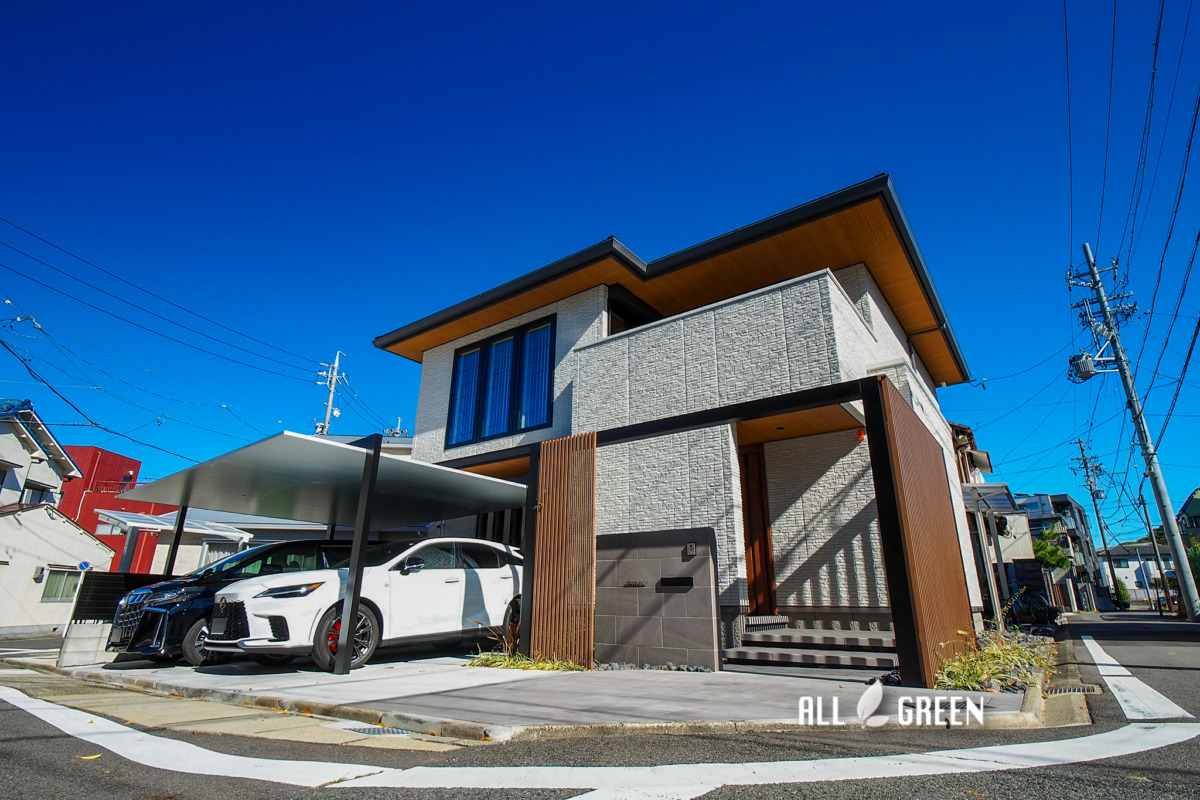 薄さ40mmの中骨レスの屋根が特徴的なSCの見た目のスマートさがしっかり邸宅に溶け込んでいます。