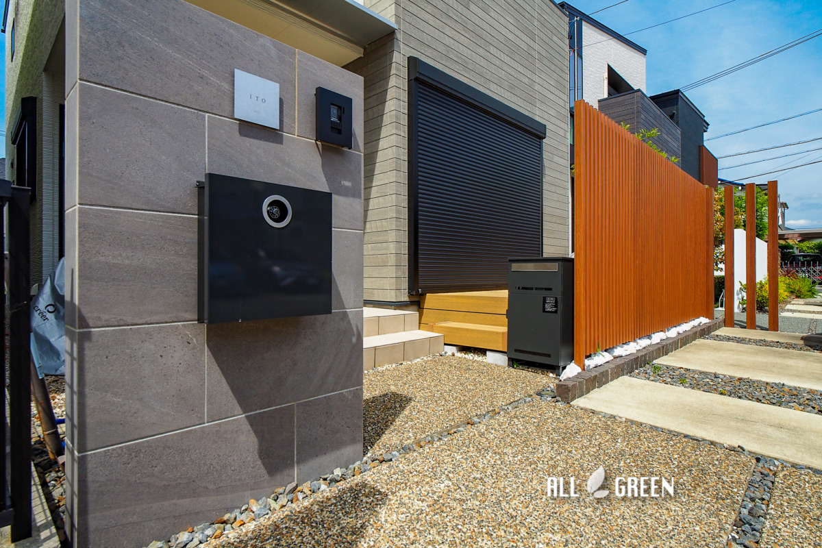 今回、表札やポストはお客様からの支給品を設置しています!弊社で造った門塀とバッチリ雰囲気が合いすぎていてお客様のセンスが光ってますよね(`・ω・´)★
