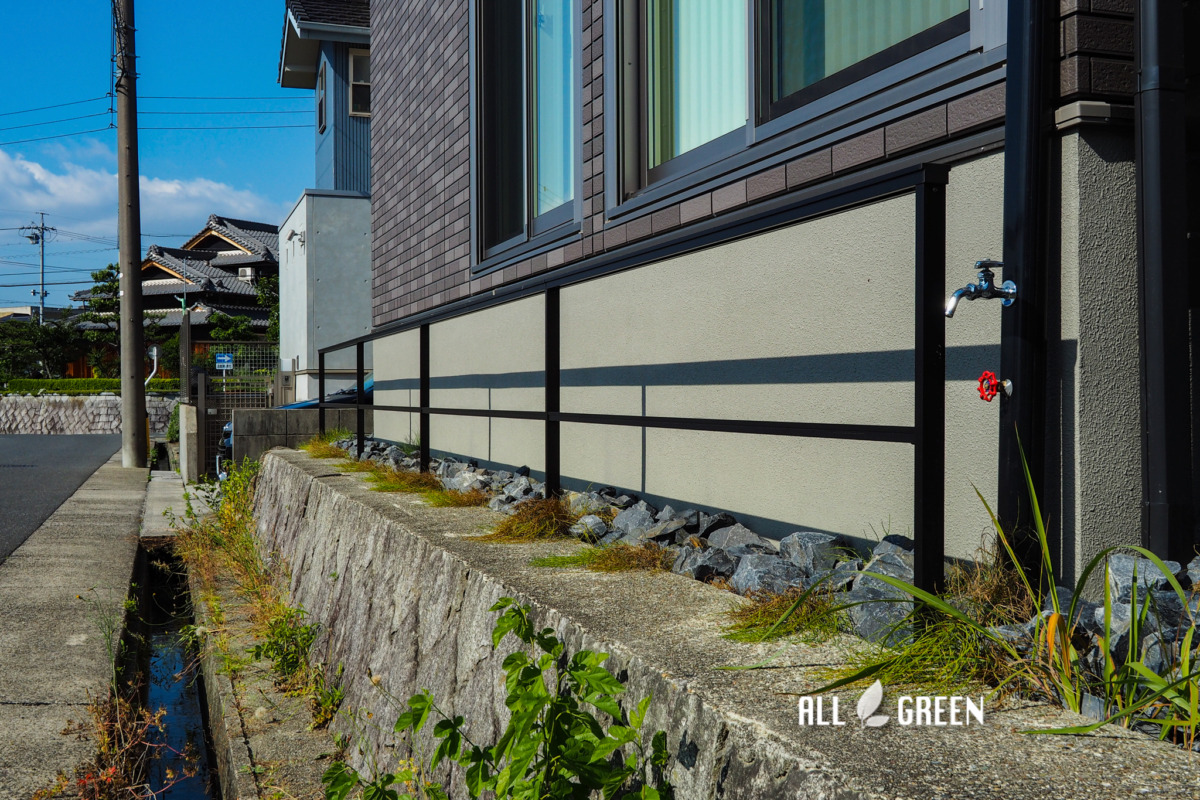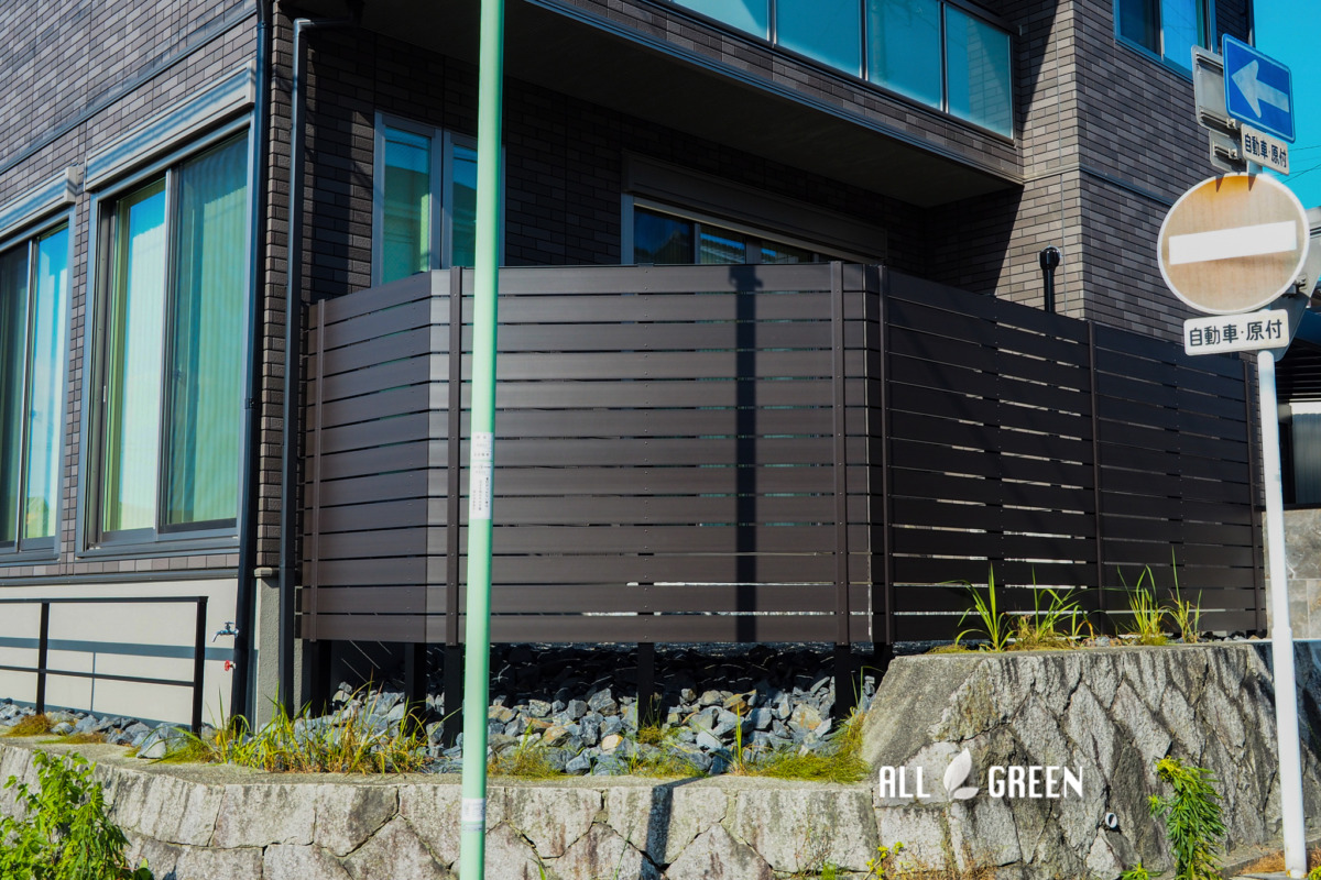 サイドにはあえて抜け感のあるフェンスを施工することでバランスの取れた外構となりました。