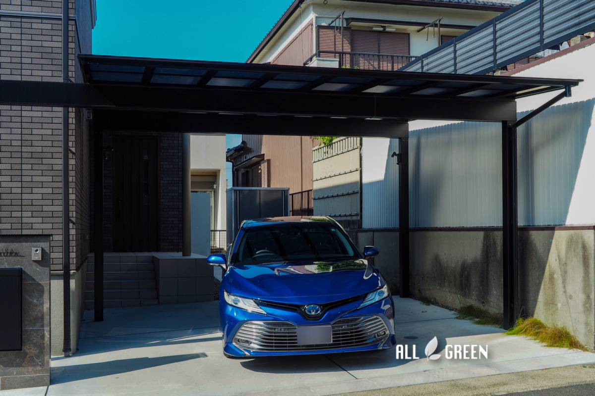 名古屋市緑区 梁延長されたカーポートがアクセントになっているモダンなオープン外構