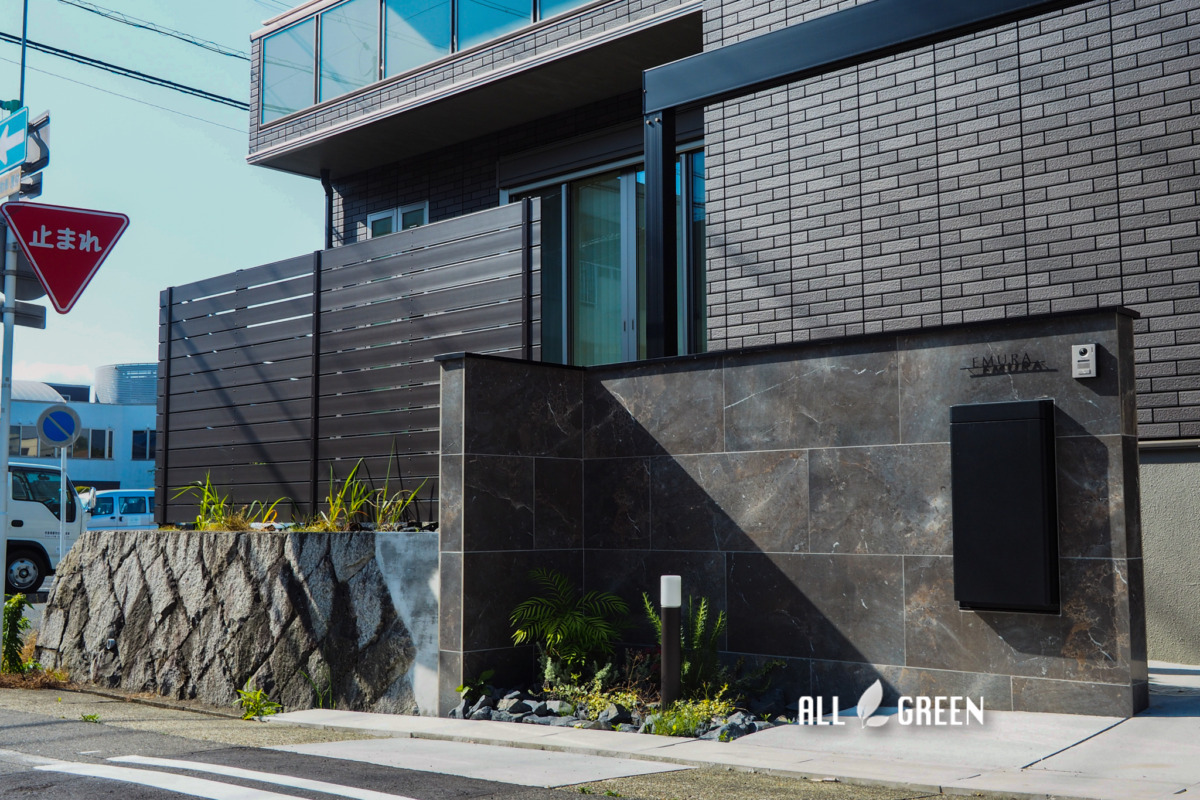 「シンプルかつモノトーンなデザインが好みなんです」と話すご夫婦の暮らす邸宅の外構工事をさせて頂きました。