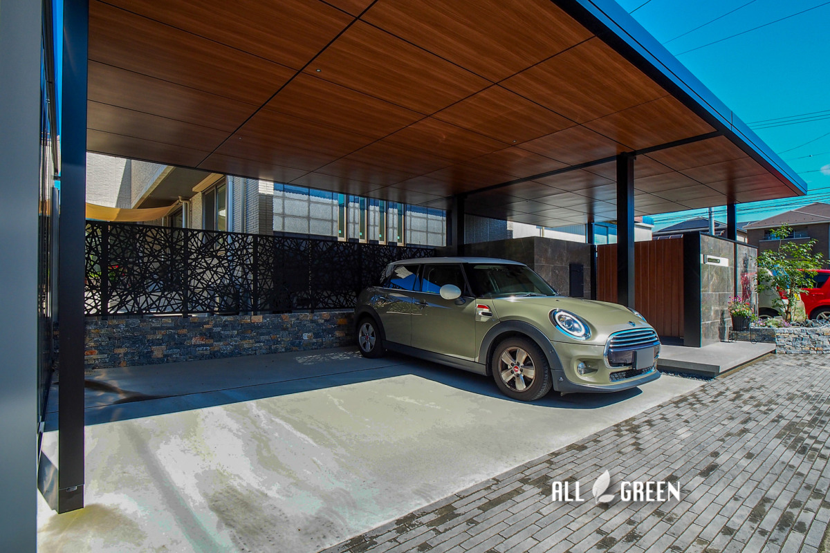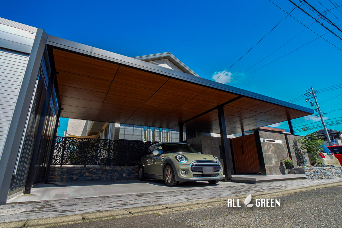 愛車をかっこよく停められるGカールーフと愛車をしっかり守ることのできるガレージ、両方を施工!