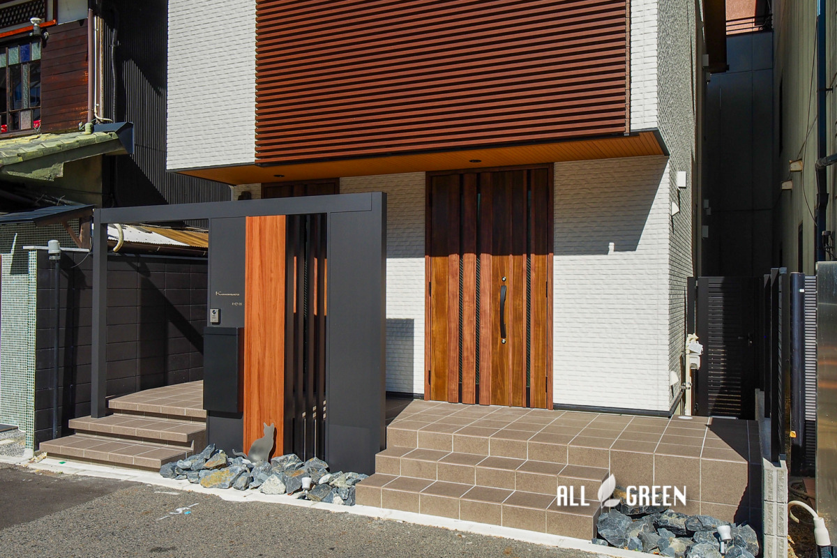 名古屋市東区 人通りの多い前面道路からの視線をカット!目隠しと門柱を兼ねたゲートがオシャレな新築外構