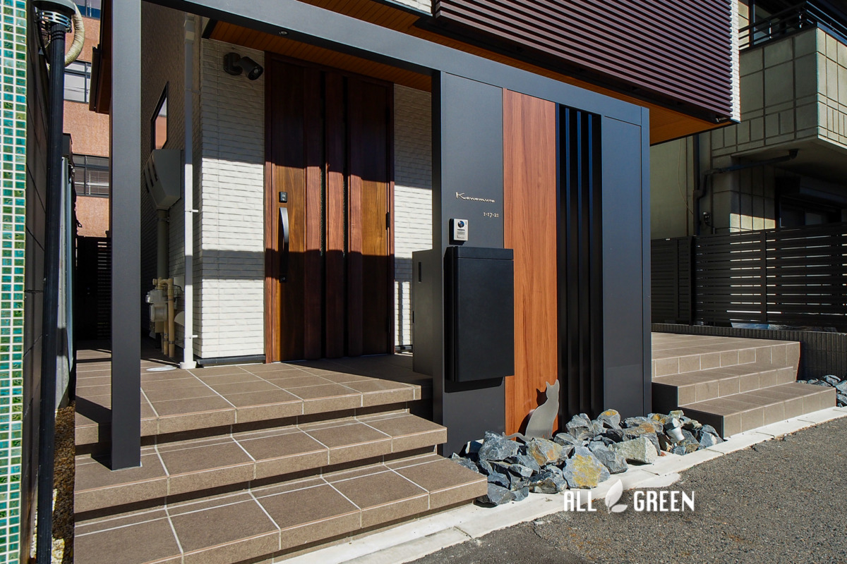 ゲートのある邸宅側は蹴込階段にし高級感のあるデザイン、店舗側のポーチはなじみのある形状に仕上げどの世代の方にも上り下りのしやすいようにしました。