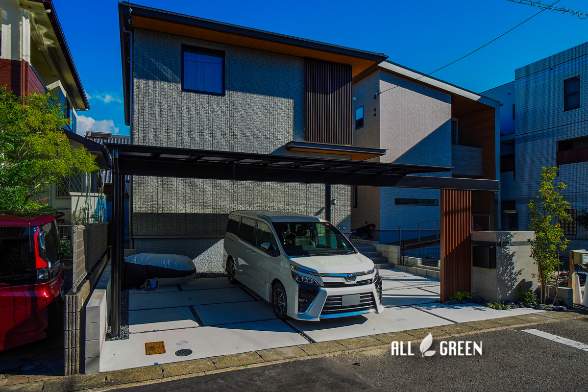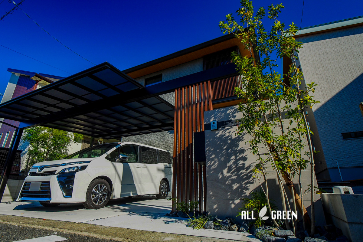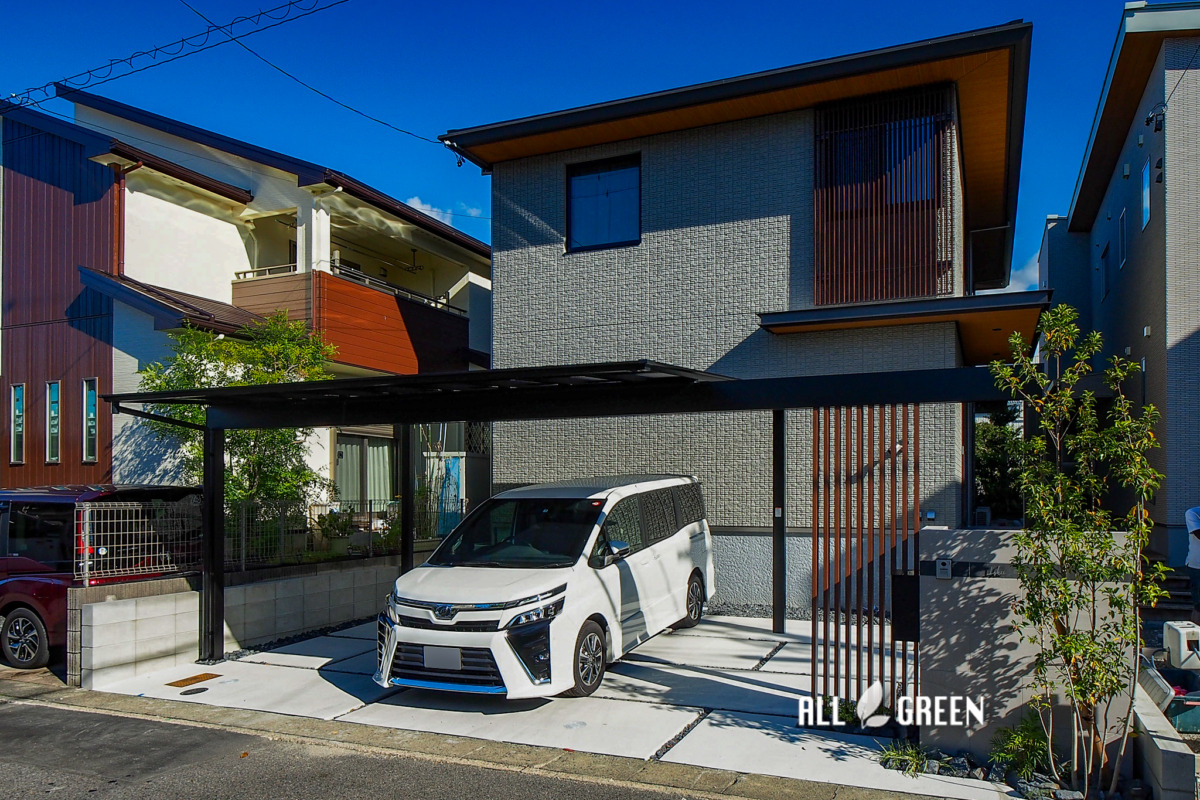 愛知県長久手市 間口を広く活用できる梁延長タイプのカーポートがお出迎え!シンプルモダンな新築外構