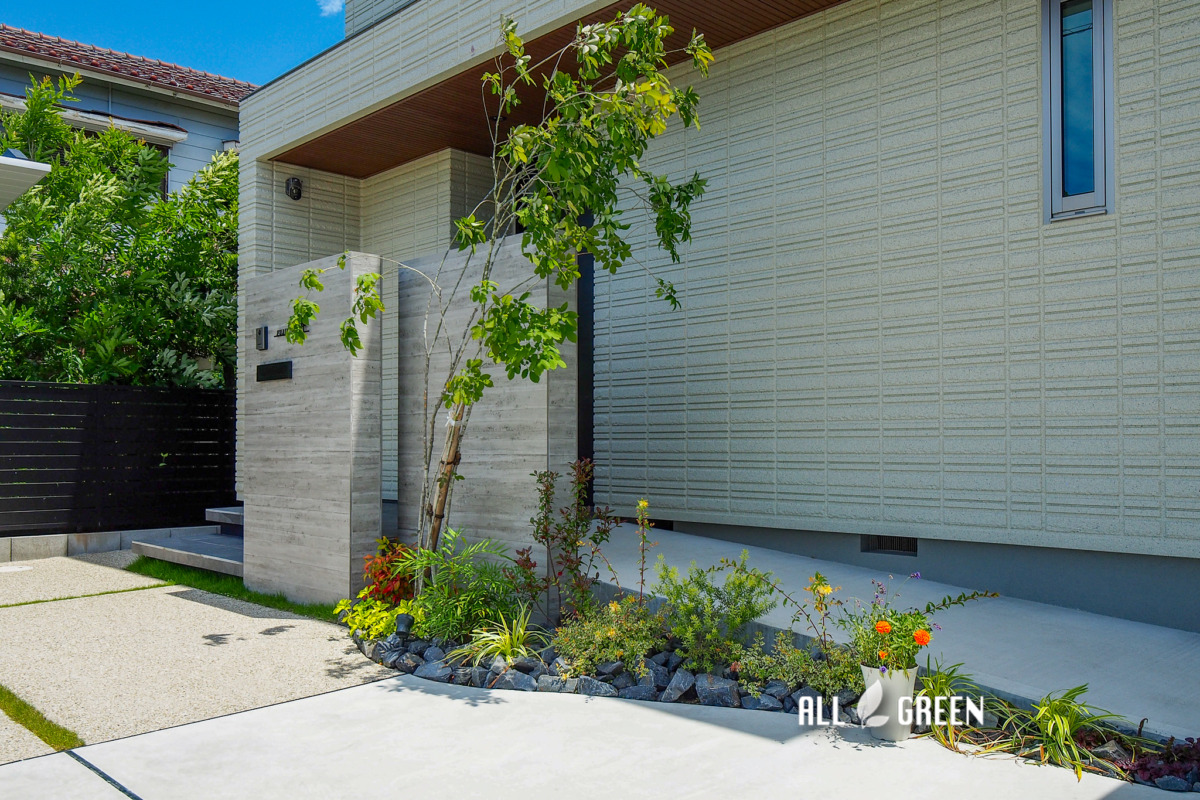 その横に割栗石と合わせて植樹されている植物とのバランスもいいですよね!!!