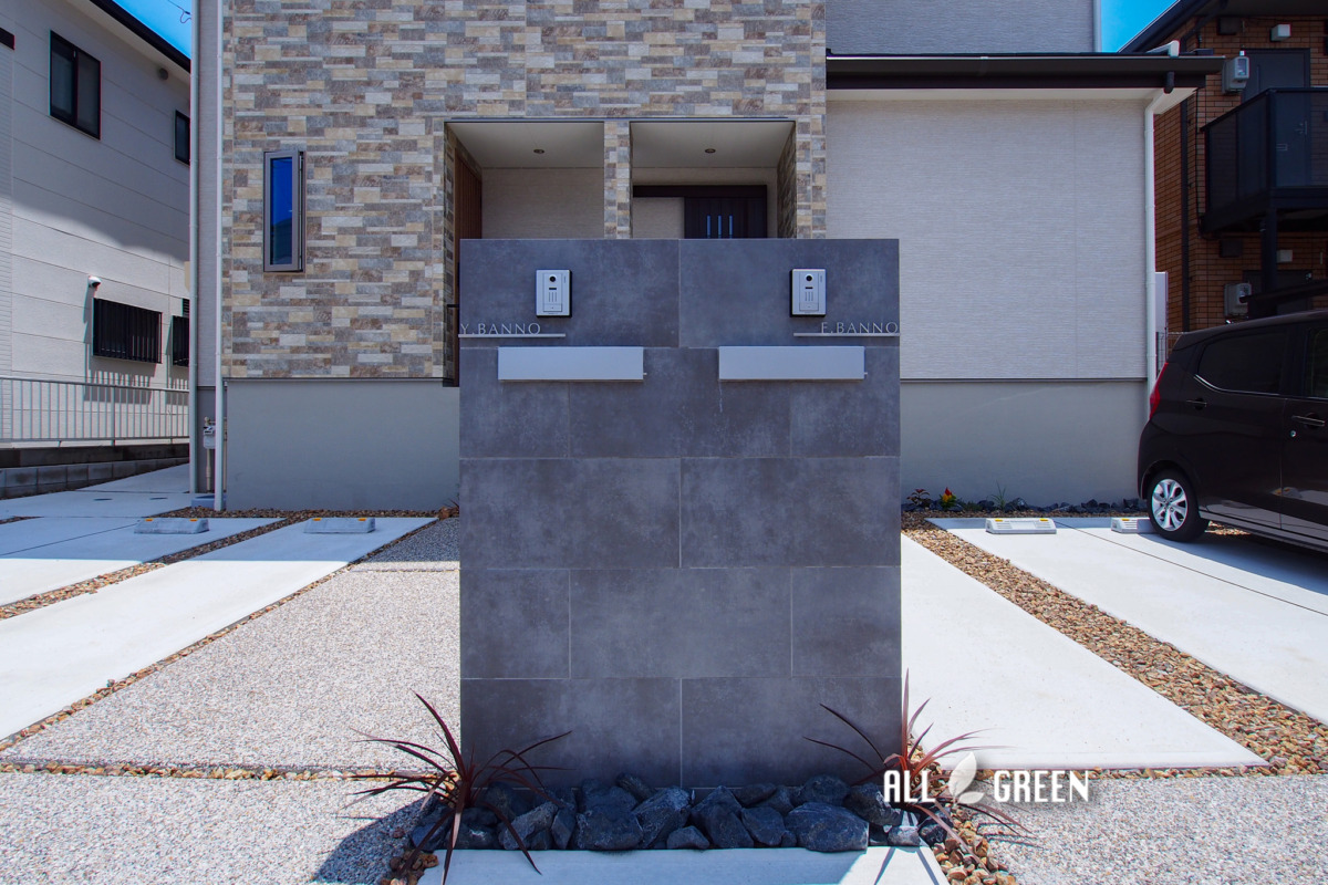 外構にはグレーや黒を取り入れて、締まった印象のモダンなデザインに仕上げました。