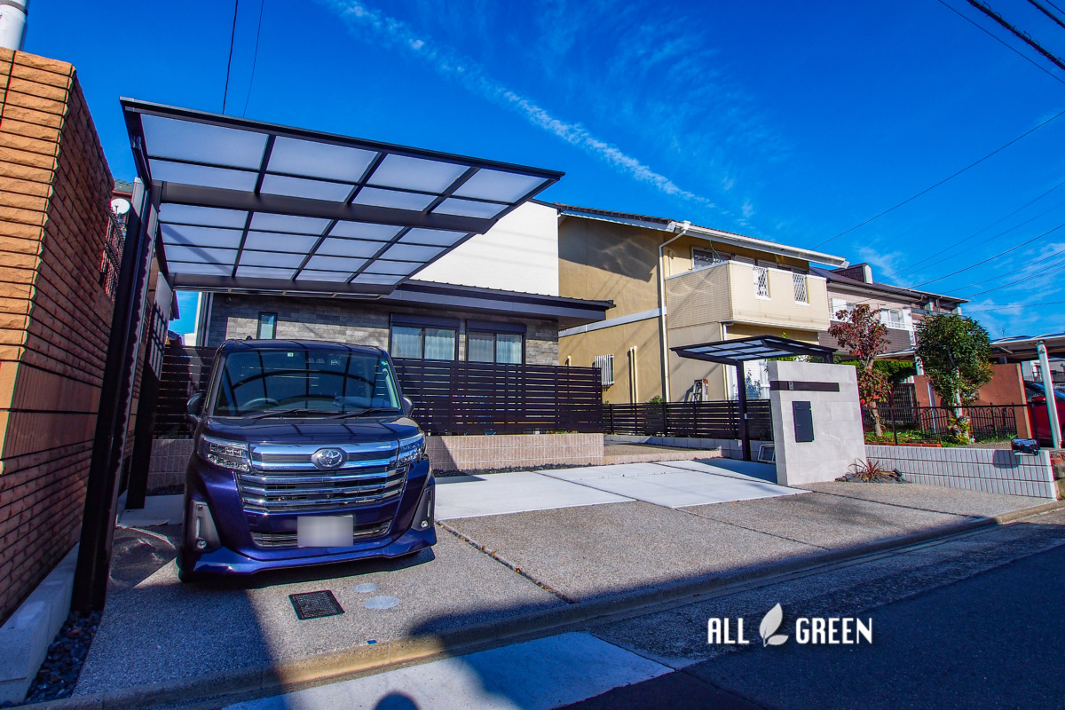 3台分の駐車場に1台用のカーポートを設置することで、他のスペースを自由に使うことができ、急な来客にも対応できる、機能性を備えた空間を実現しました。