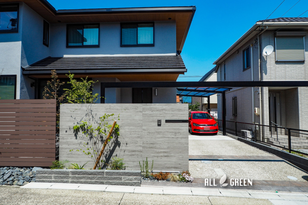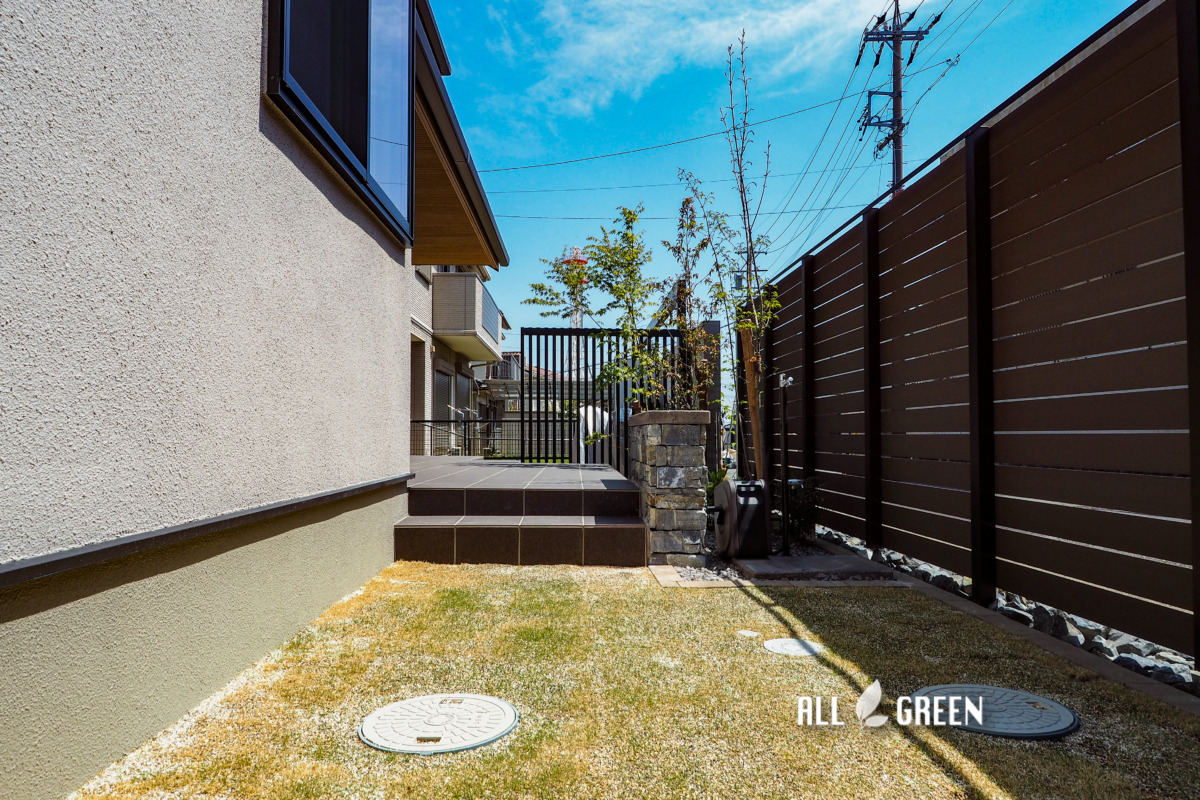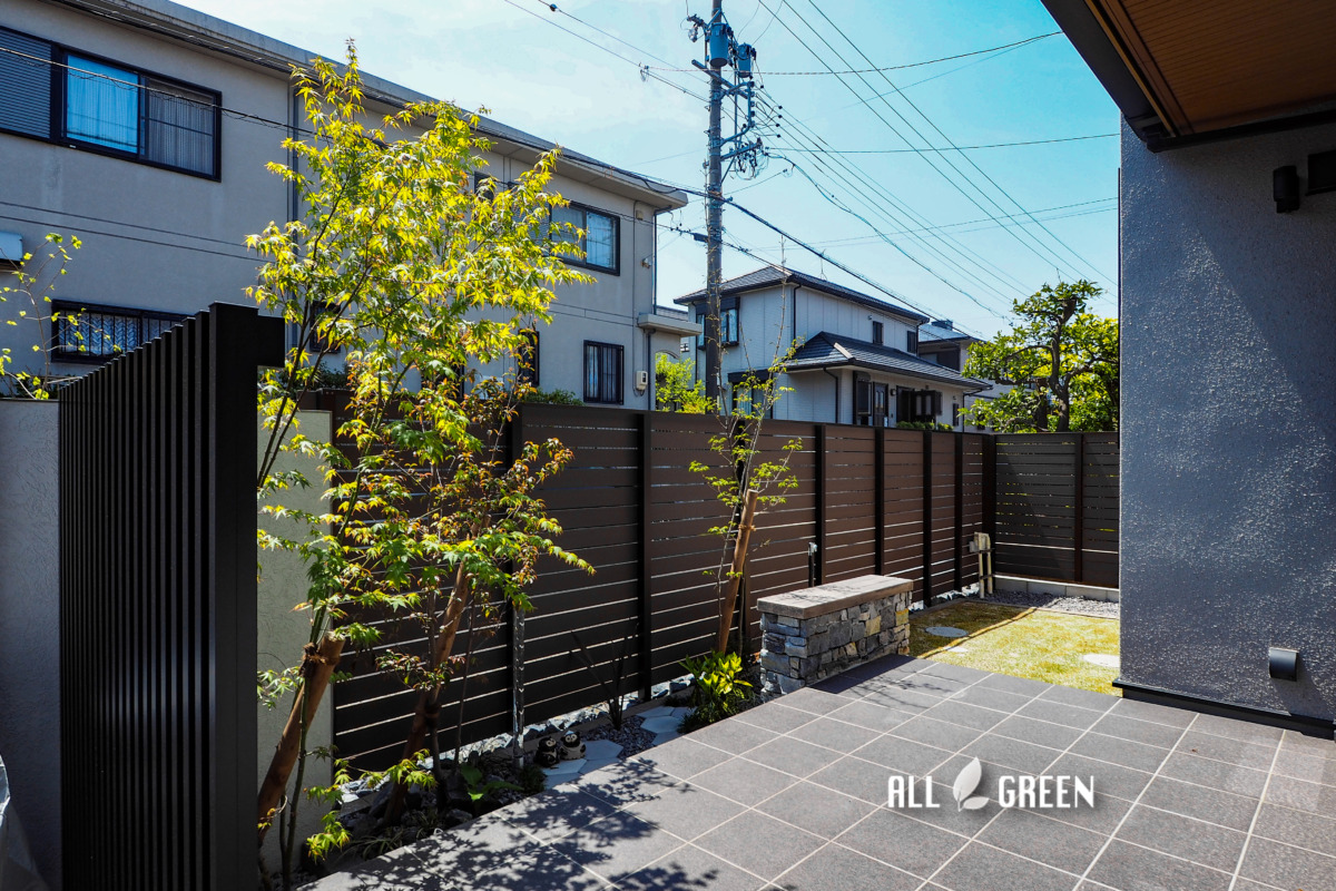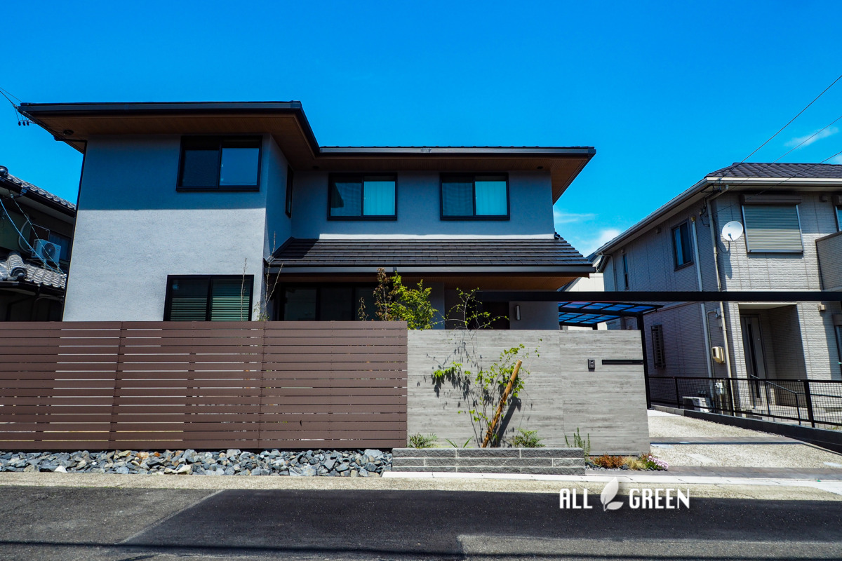 名古屋市緑区 暖かさと高級感を兼ね備えたナチュラルモダンなセミクローズ外構