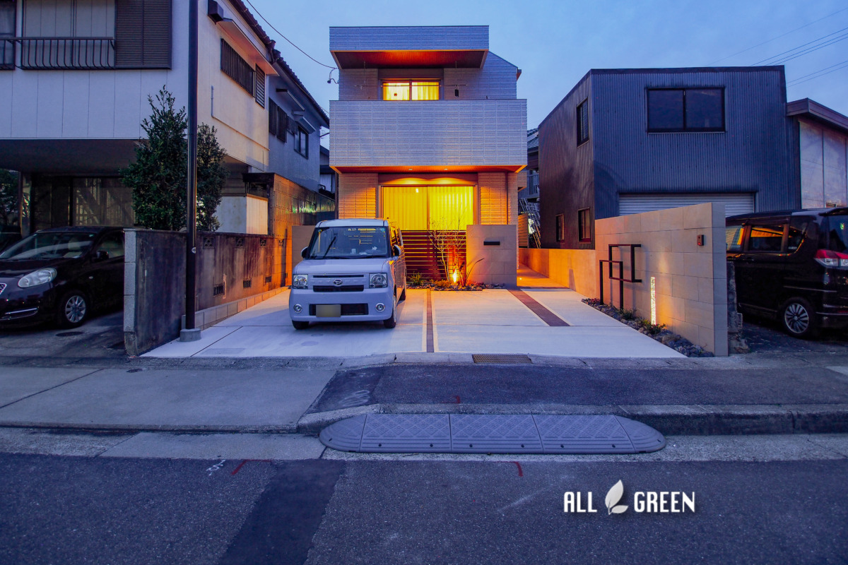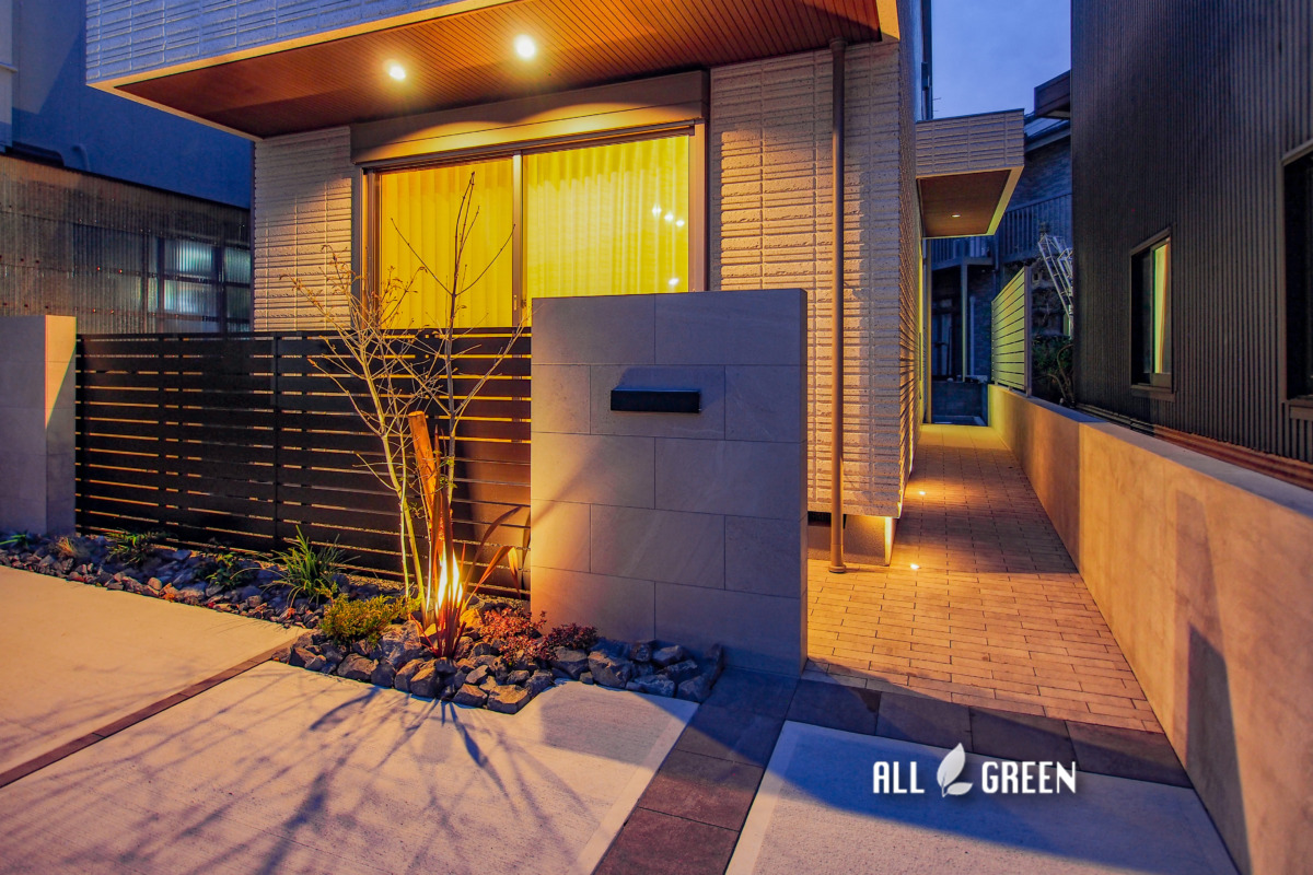 | 外構工事概要 | 名古屋市緑区 Y様邸新築外構工事 駐車場、照明、植栽、フェンス、門塀、ポスト |