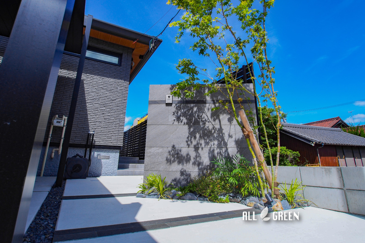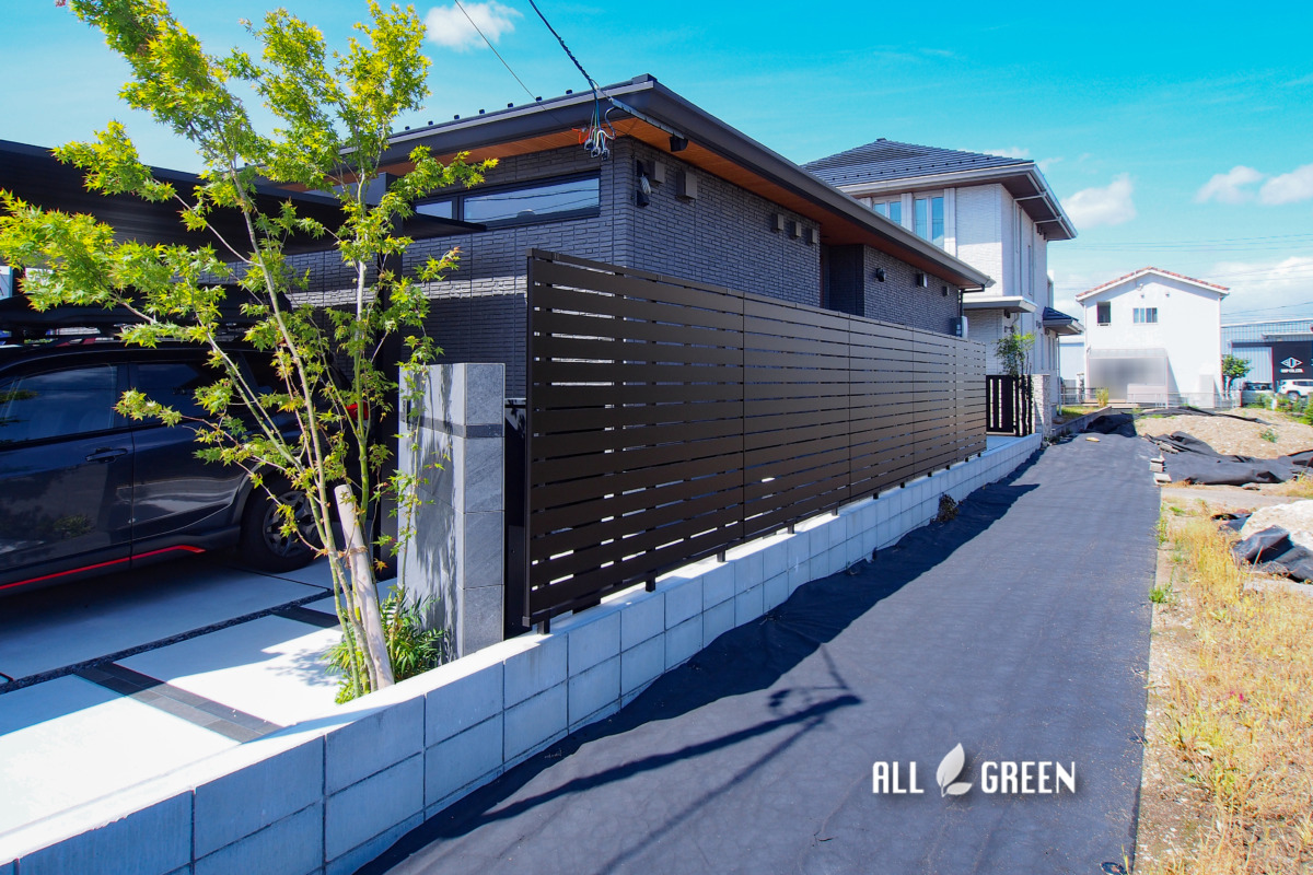 愛知県春日井市 落ち着いた色合いと洗練されたデザインが調和する、上品な雰囲気の新築モダン外構