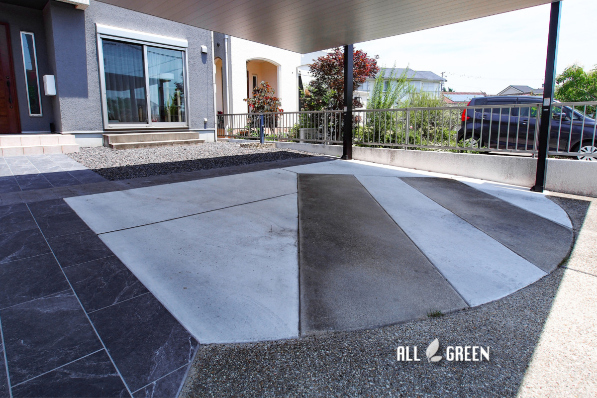 まず、芝生をすべて撤去して、土間コンクリートを打設した後、新たに駐車場を設けました。コンクリートは耐久性が高く、雨の日でもぬかるむ心配がないため、スムーズに車の出し入れを行えることが大きなメリットです。