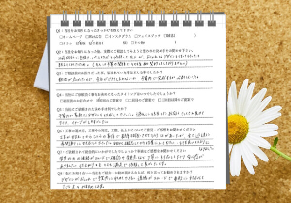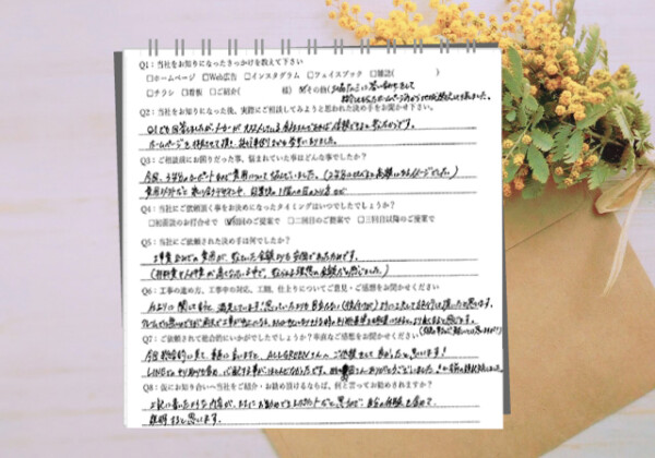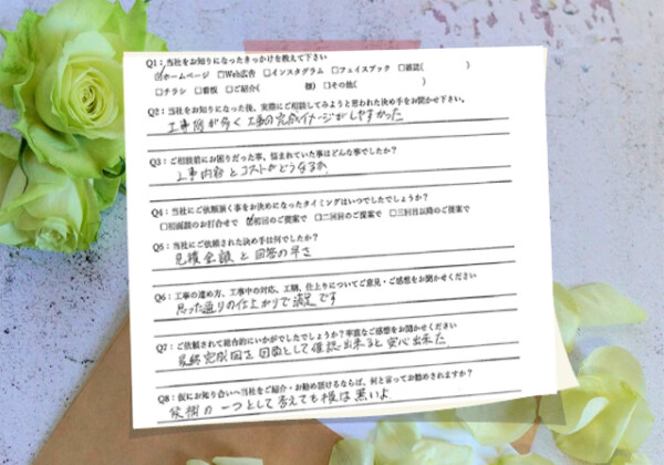 Q1:当社をお知りになったきっかけを教えてください ☑ホームページ Q2:当社をお知りになった後、実際にご相談しよ...