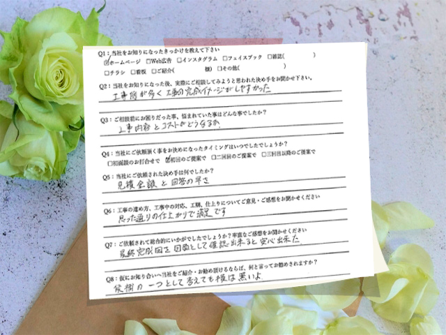 Q6:工事の進め方、工事中の対応、工期、仕上がりについてご意見・ご感想をお聞かせください