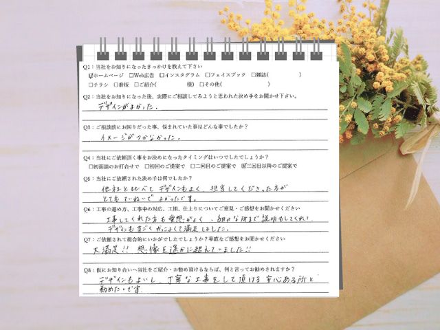 デザインも良いし、丁寧な工事をしていただける安心あるところと勧めたいです。