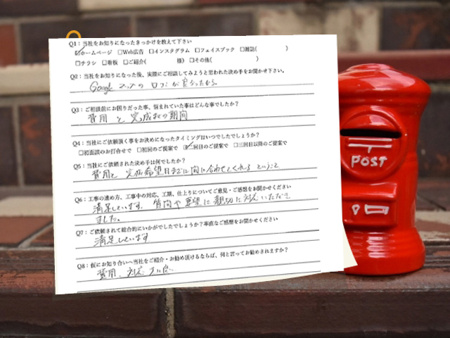 要望や質問にも丁寧に対応していただき、希望日までに完成して本当に助かりました! 費用も仕上がりも大満足です。ありがとうございました!名古屋市緑区/T様邸