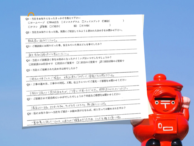 Q6:工事の進め方、工事中の対応、工期、仕上がりについてご意見・ご感想をお聞かせください