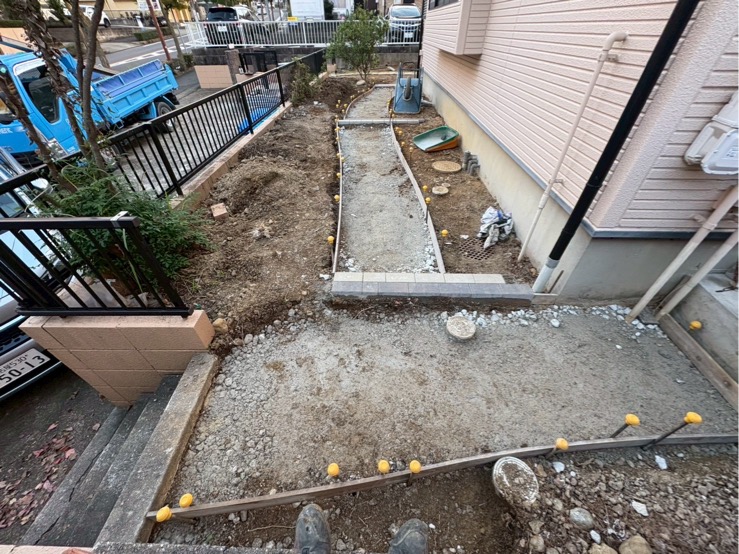 こちらは家奥の駐車場から玄関へ続くアプローチを作っています⭐