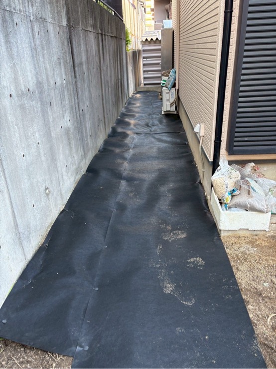 家回りは防草シートを丁寧に敷いて雑草対策!!