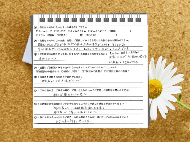 Q6:工事の進め方、工事中の対応、工期、仕上がりについてご意見・ご感想をお聞かせください